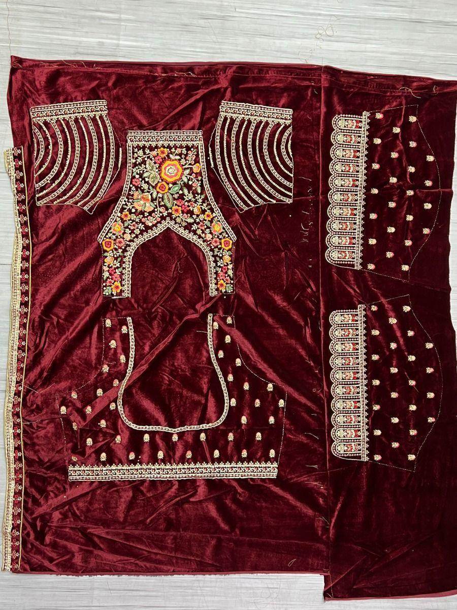 Transform yourself into a diva with our Glorious Maroon Embroidered Velvet Bridal Lehenga Choli! This stunning piece is perfect for any special event, from weddings and engagements to festivals and evening occasions. Made with high-quality velvet, this lehenga is designed to make you feel comfortable while looking elegant and sophisticated