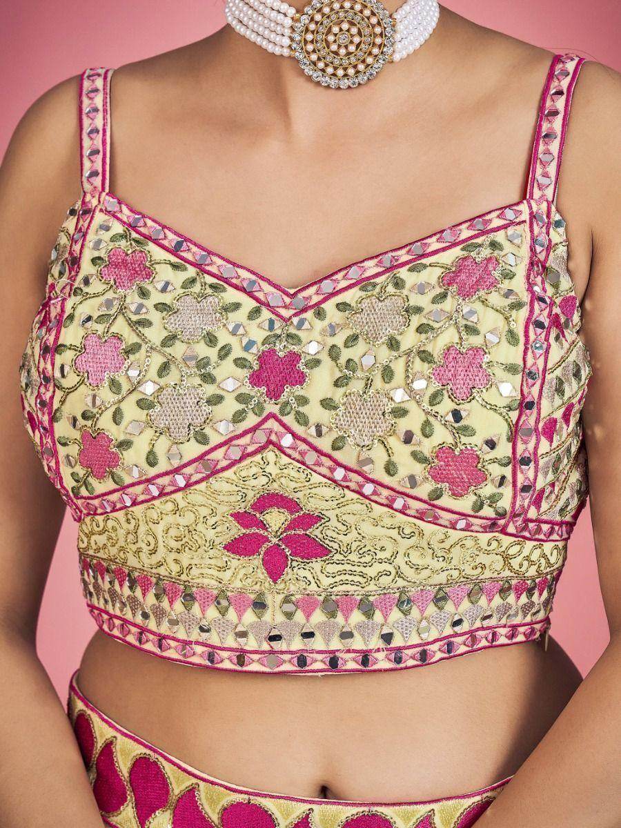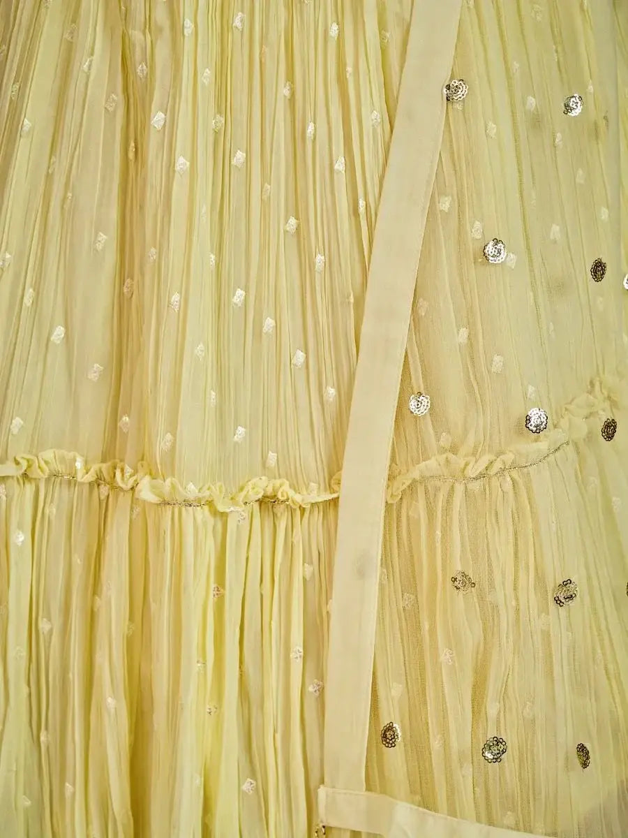 Introducing the Glorious Yellow Sequin Work Georgette Ceremony Wear Lehenga Choli, the perfect addition to your festive wardrobe! This stunning light yellow lehenga is embellished with exquisite sequin work, making it the ideal outfit for your special occasions. Available in two sizes (M=38, L=40), this fully-stitched lehenga choli is made with high-quality georgette material that ensures both durability and comfort. Embellished with exquisite sequin work, multi-thread embroidery, and mirror work.