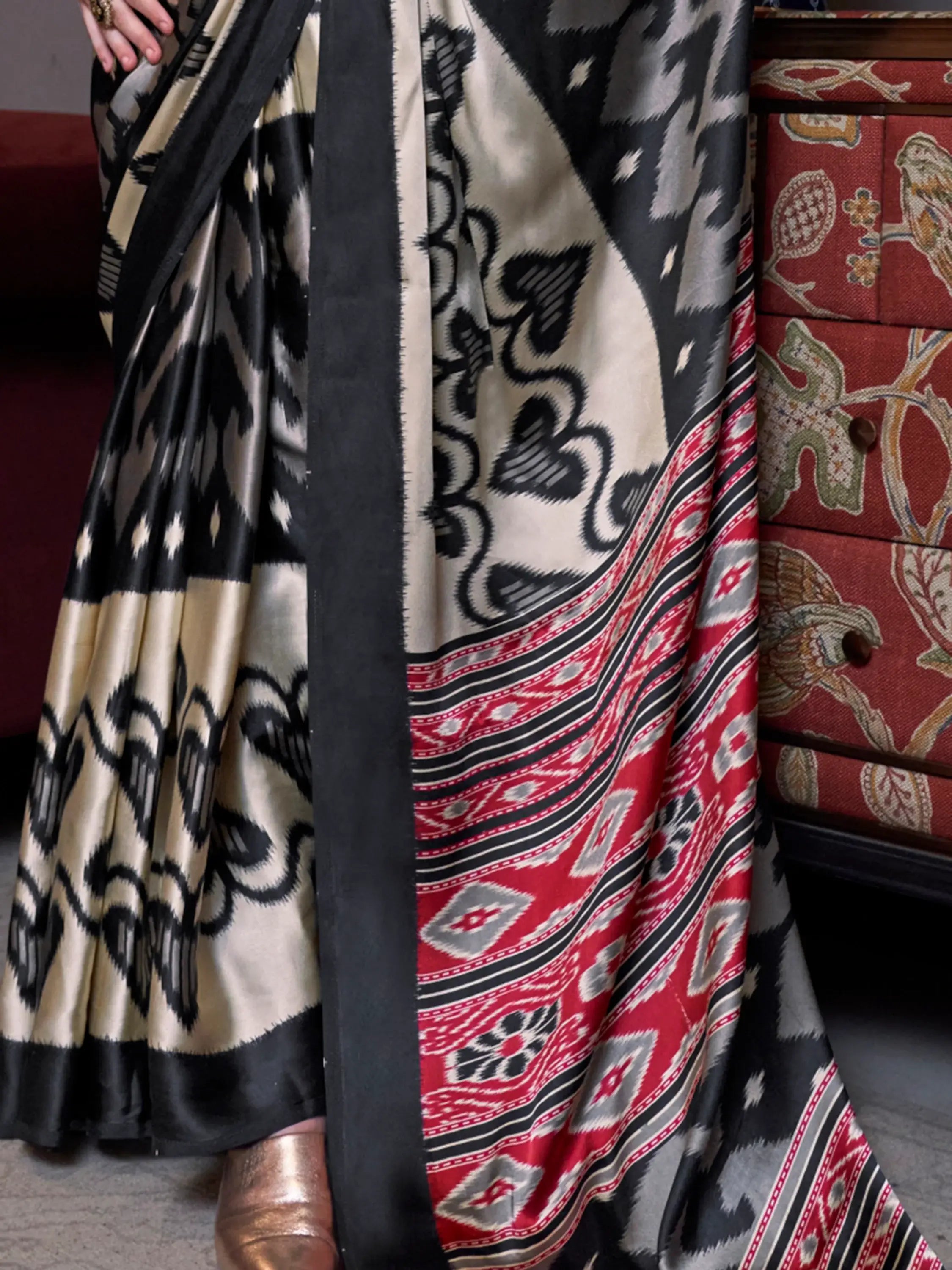The cream color complements a variety of skin tones, while the digital print work adds a modern twist to the classic design. The set includes a black silk blouse with matching print work, completing the ensemble with effortless style.