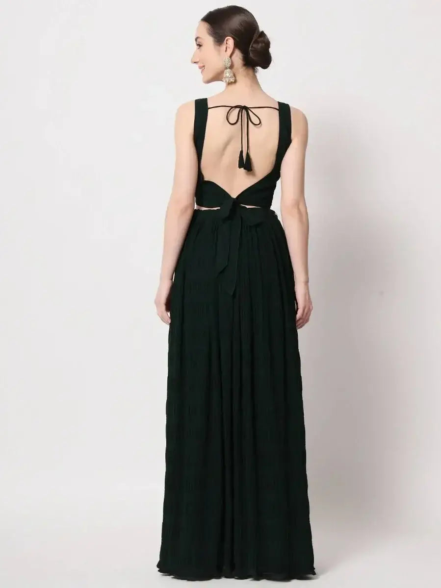 Dressed up in the elegance of comfort and style, this glamorous green georgette lehenga with crush pattern and fancy waistband.