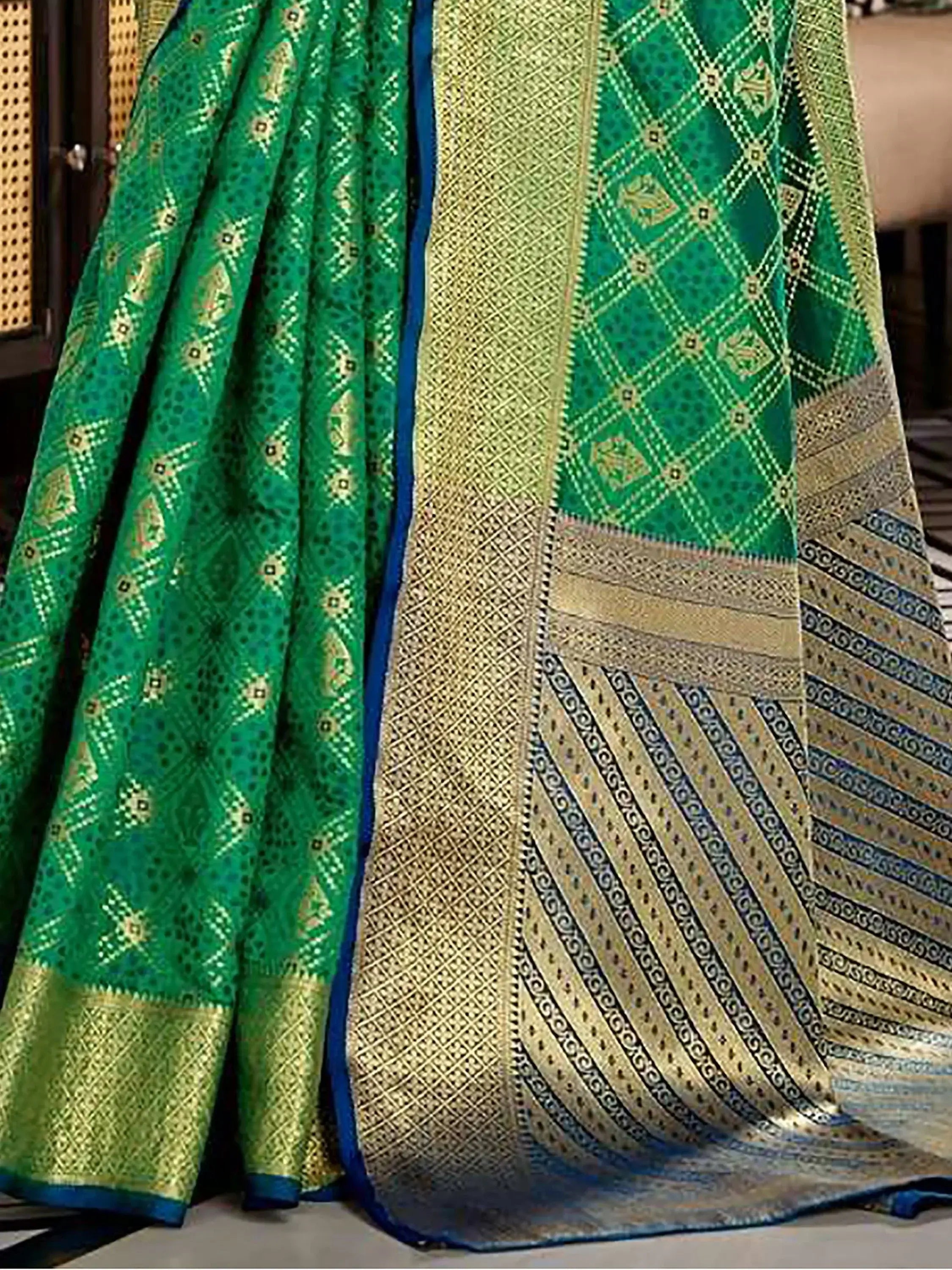 This green color silk saree features exquisite zari weaving work, giving it a traditional yet elegant look that is perfect for weddings, festivals, and other special occasions.
