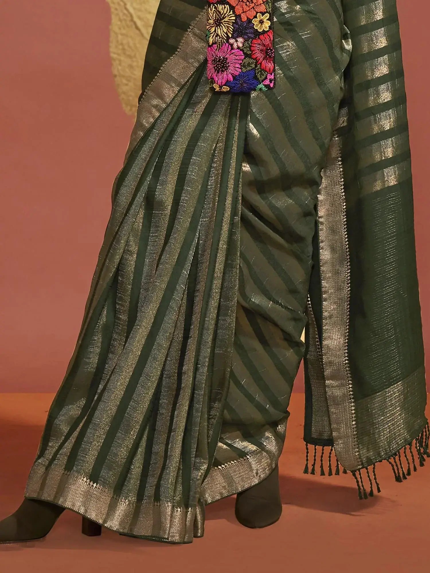 This saree is a must-have addition to your ethnic wear collection. Its rich green color, viscose silk material, zari weaving work, and versatile styling options make it a desirable choice for any fashion-forward individual. Embrace the allure of traditional Indian attire with this stunning saree and revel in the timeless beauty it exudes.