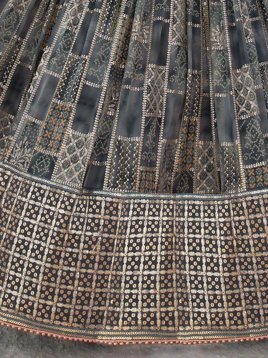 Introducing our gorgeous grey sequins georgette wedding wear lehenga choli, a perfect ensemble for all your special occasions. This ready-to-wear lehenga choli comes in a stunning grey color, crafted with delicate sequin work and digital print to elevate your style.