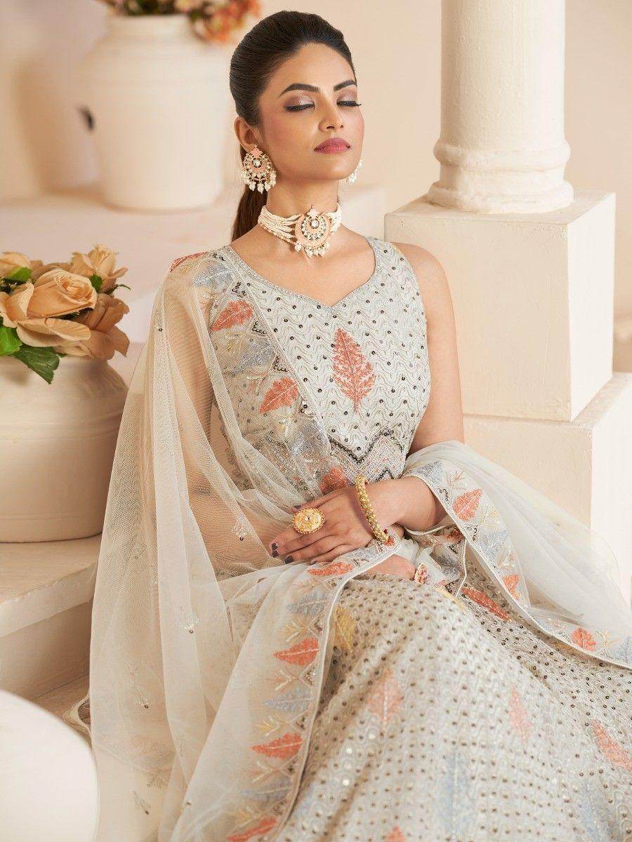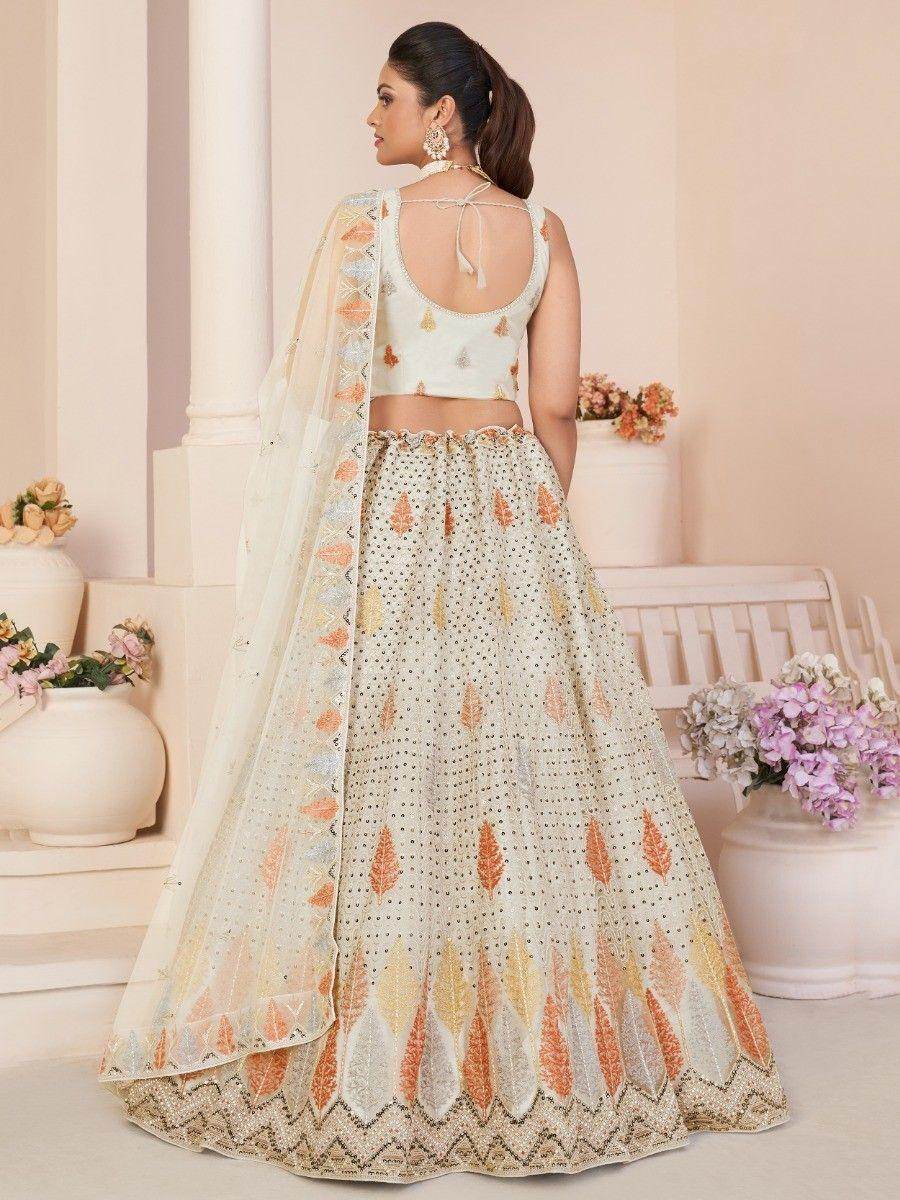 This versatile off-white lehenga choli is ideal for various occasions such as weddings, receptions, festivals, and other celebrations. Its timeless appeal and intricate craftsmanship make it a statement piece that will turn heads wherever you go.