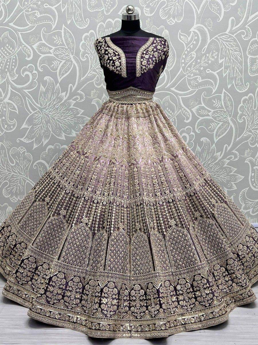 Lehengas are the highlight of any bridal ensemble, and sometimes the important aspects can be overlooked in the quest for the perfect outfit. But fear not! With our gorgeous purple thread work velvet lehenga choli with double dupatta, you can make sure your look is absolutely precious on your special day.