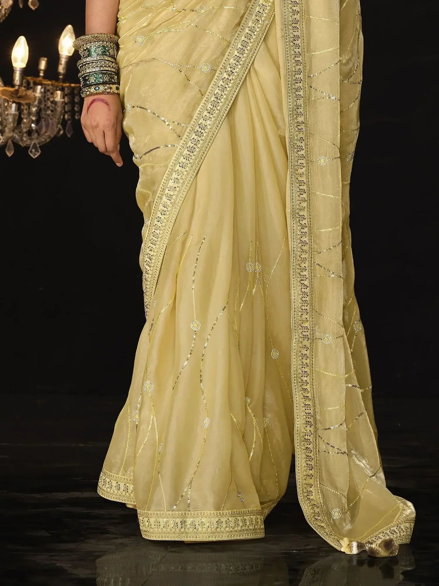 Add a touch of elegance and sophistication to your ethnic wardrobe with our gorgeous yellow sequins silk function wear saree with blouse. This stunning ensemble is perfect for any special occasion, be it a festival, wedding, reception, or any other event where you want to make a statement.