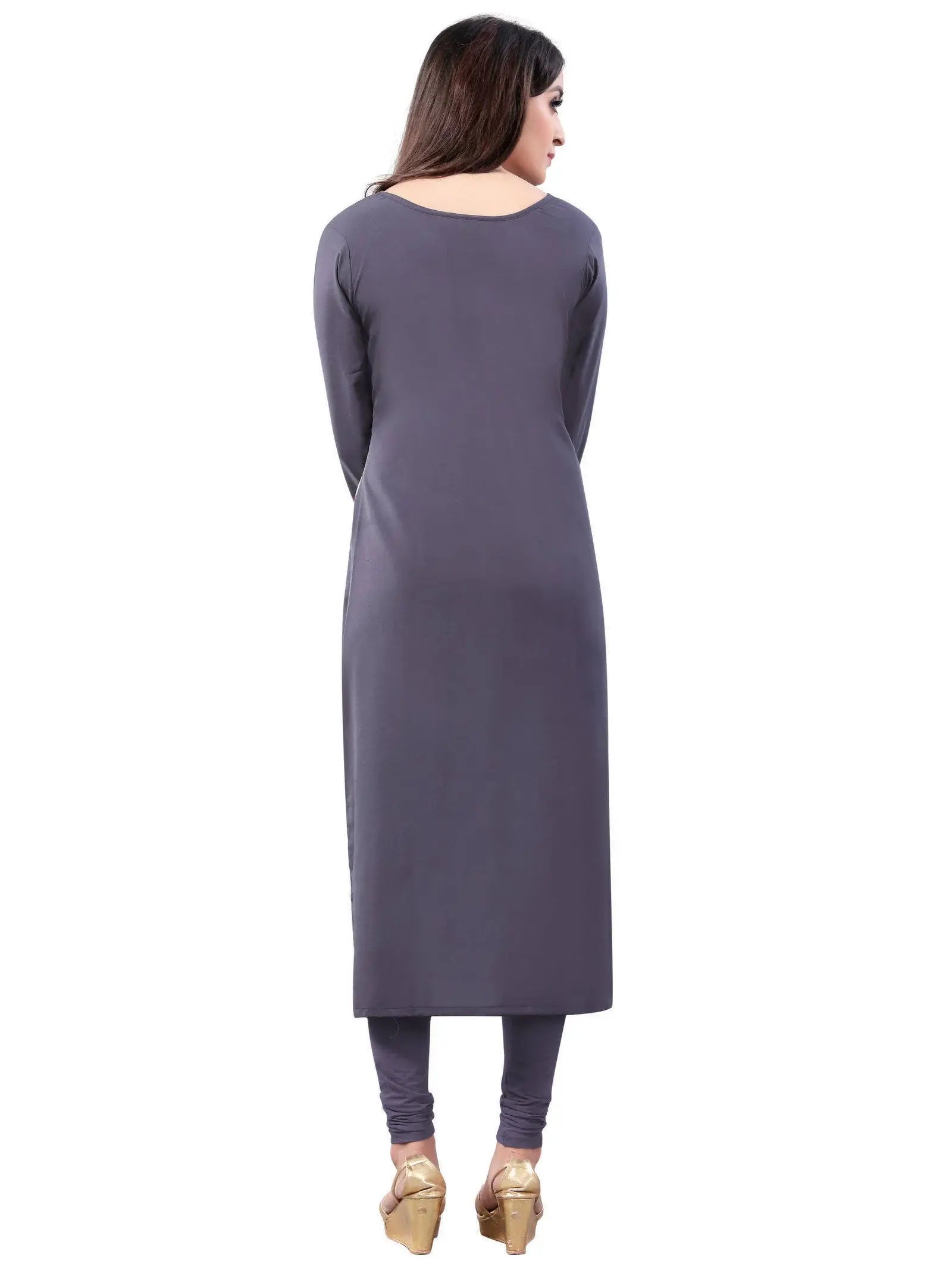 Look gracious in this readymade gray American Crepe / Rayon fabric straight casual wear designer kurti adorned with beautiful digital floral printing all over.