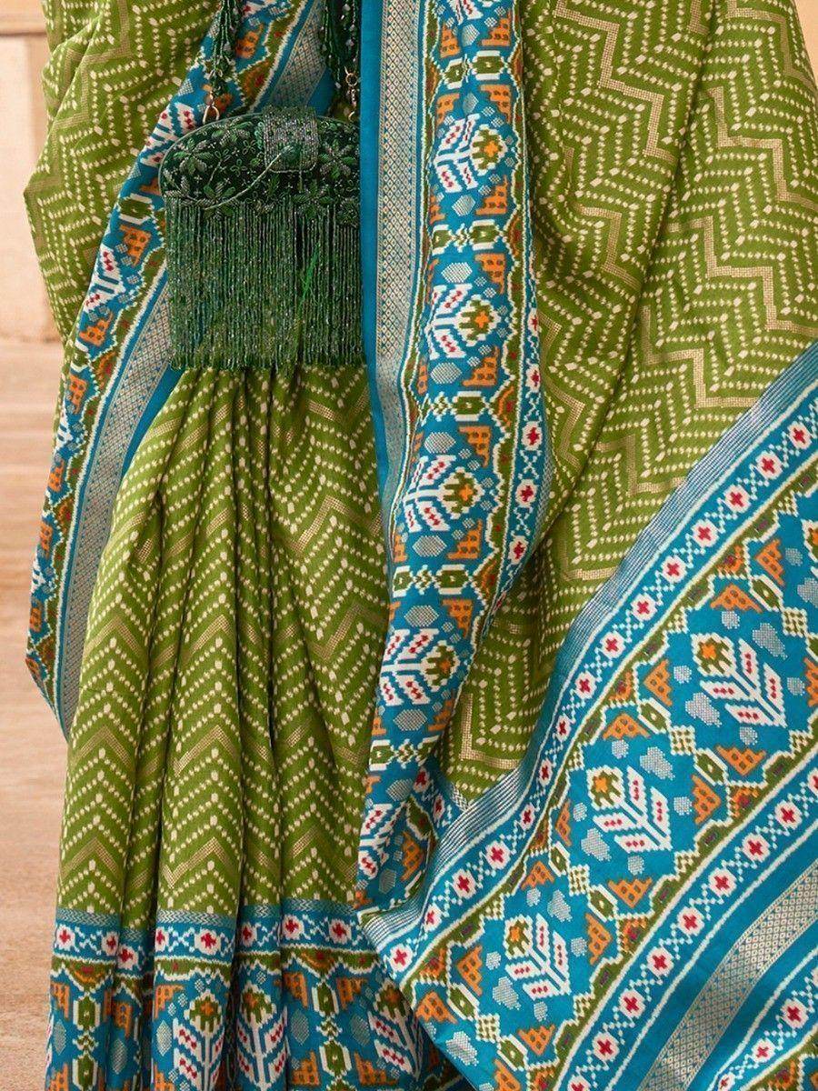 Designed for special occasions, festivals, weddings, and functions, this silk saree is guaranteed to make you the center of attention. Its vibrant green hue, coupled with the digital print work, creates a striking visual appeal that is hard to resist. The intricate patterns and designs on the saree elevate its allure, making it a must-have for any woman who wants to make a statement.