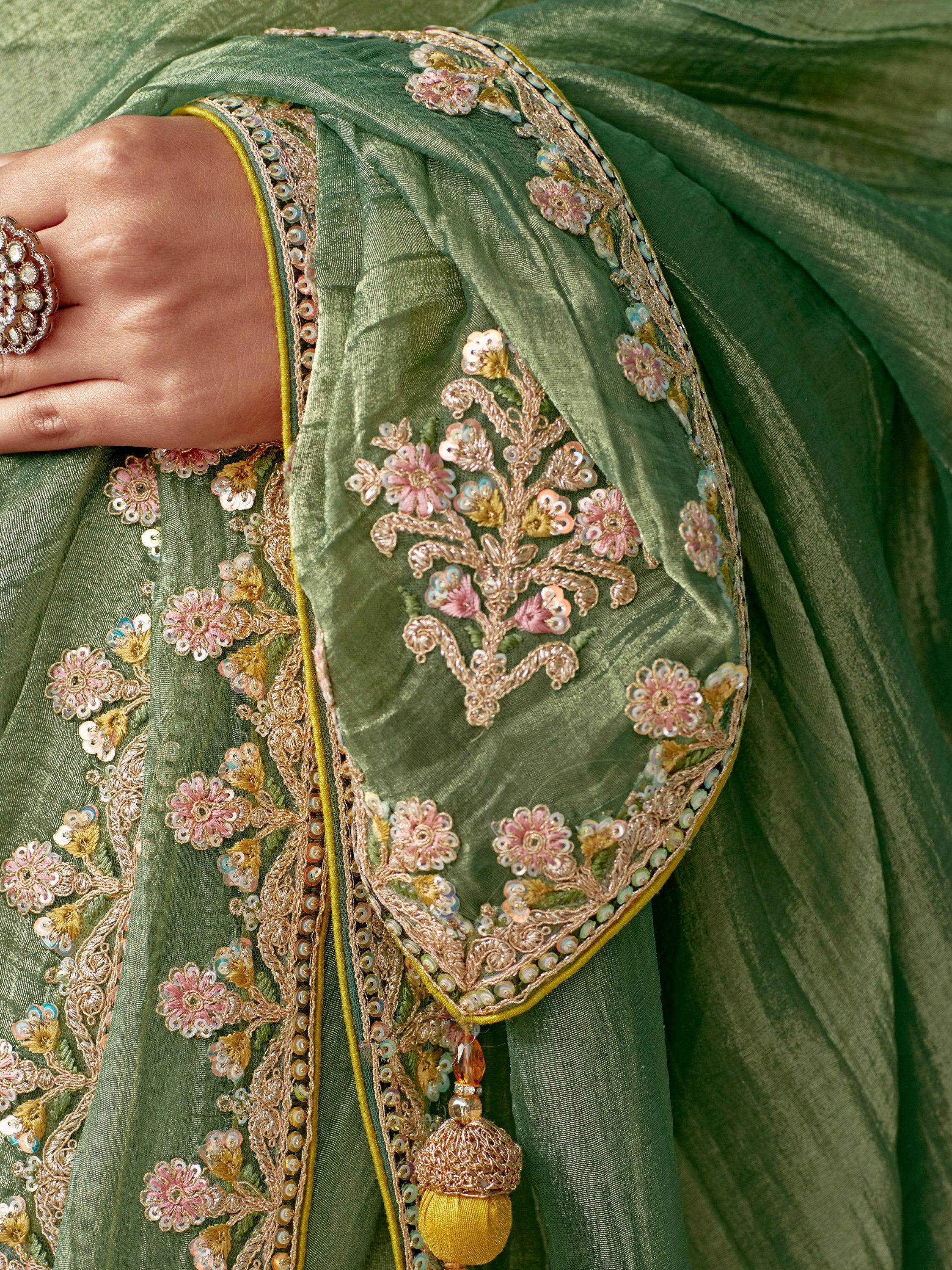 Pista Green Dori Thread Embroidered Net Wedding Lehenga Choli
