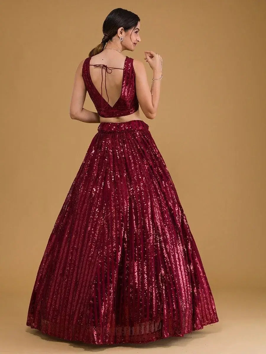 This lehenga choli is not only aesthetically pleasing but also highly versatile. It is the perfect choice for receptions, parties, and other special occasions where you want to make a statement. The combination of the rich red color, sequin work, and embroidery makes it a truly remarkable outfit that will leave a lasting impression.