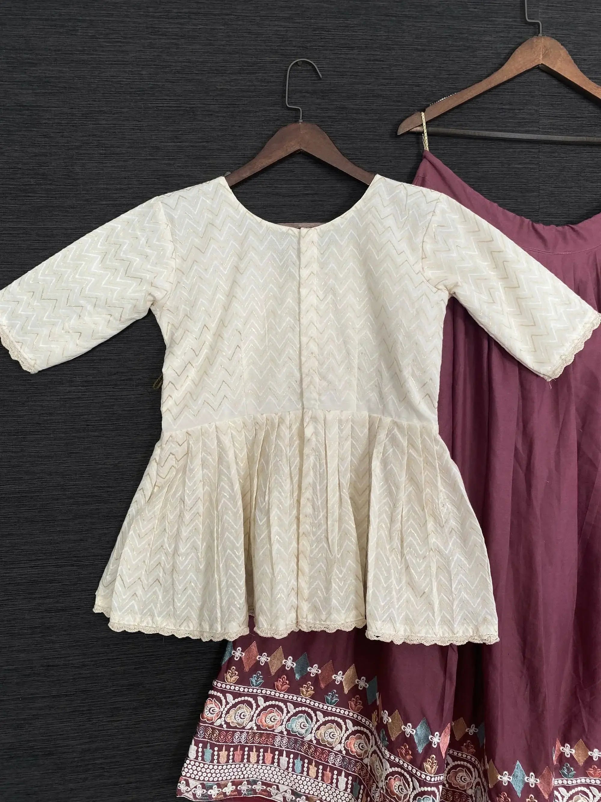 Paired with an off-white weaving design peplum choli is featured with angrakha style.