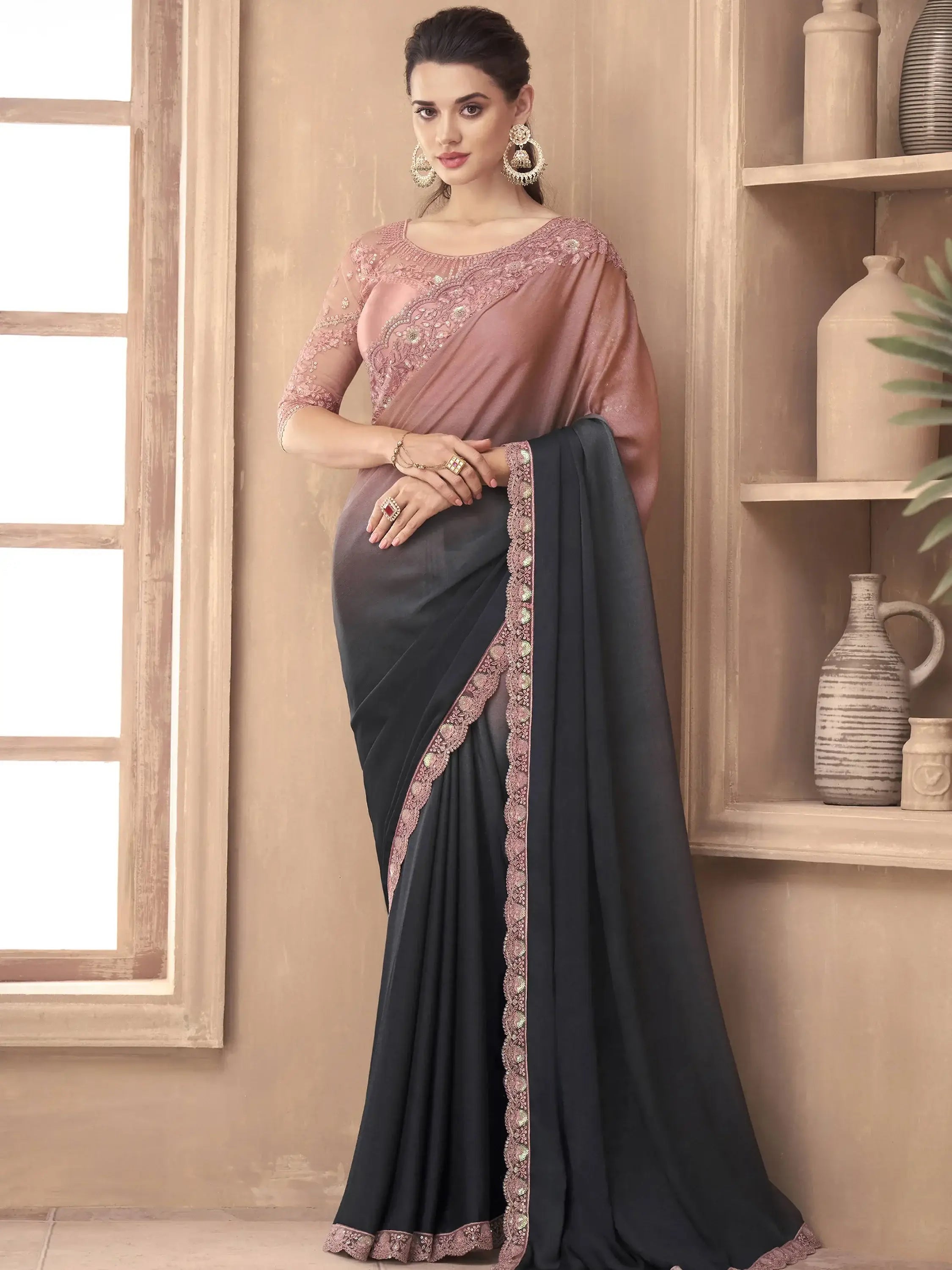 Celebrate your special occasions in style with this beautifully designed grey and peach color silk saree, a perfect blend of elegance and tradition. Adorned with intricate thread embroidery and shimmering sequin work, this saree exudes a refined charm that is ideal for parties, receptions, festivals, and other grand events.