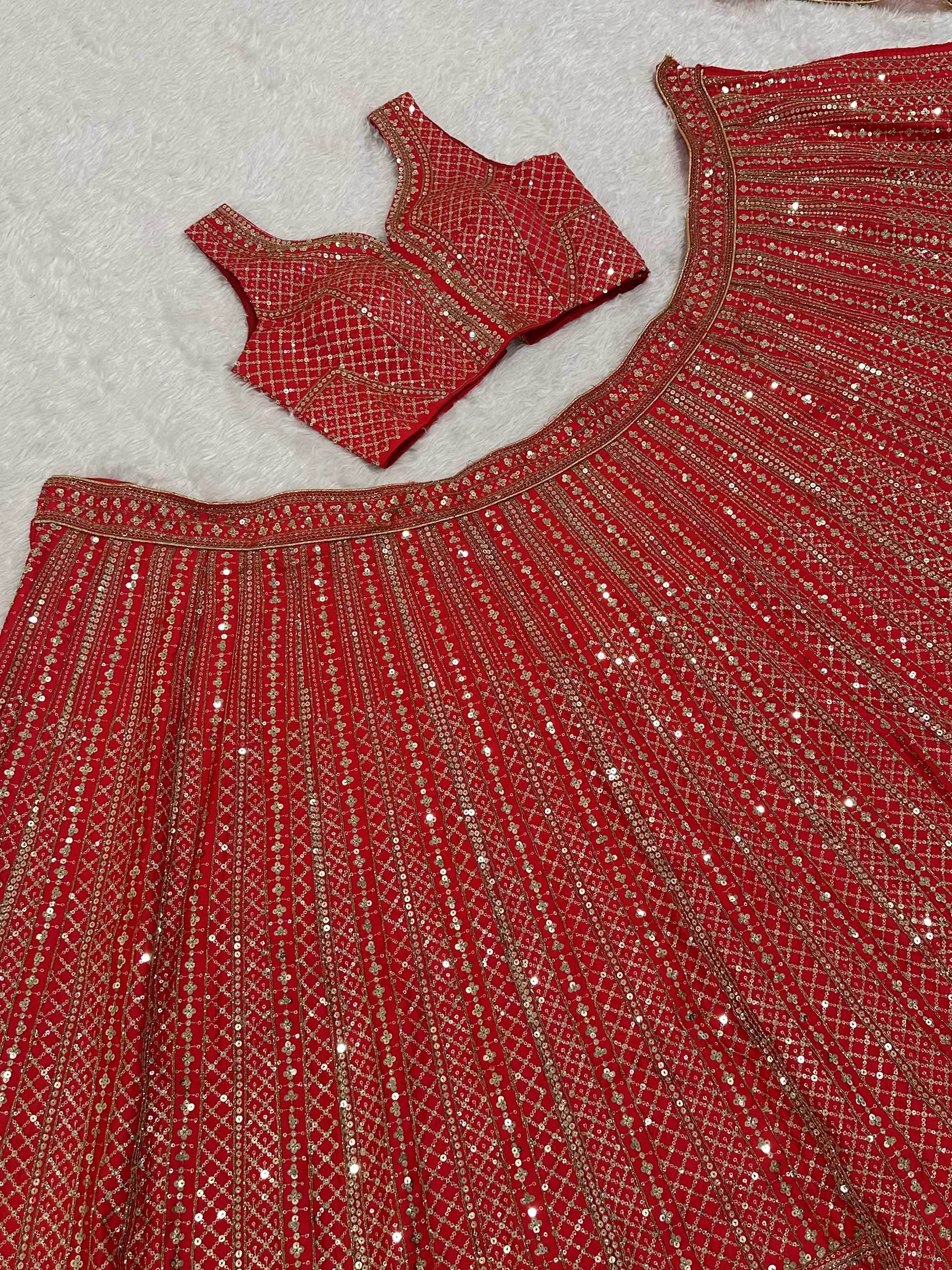 Ideal for weddings, sangeet nights, receptions, and grand festive celebrations, this red lehenga set delivers a bold and glamorous statement. Its radiant embroidery and rich craftsmanship make it perfect for brides or anyone wishing to stand out in traditional luxury.