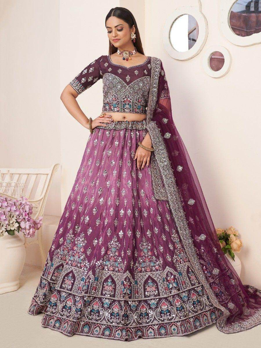 This wine wedding lehenga choli is perfect for any occasion you want to attend, be it a wedding, reception, or engagement. Its traditional touch combined with its stylish design makes it a versatile choice for any function.