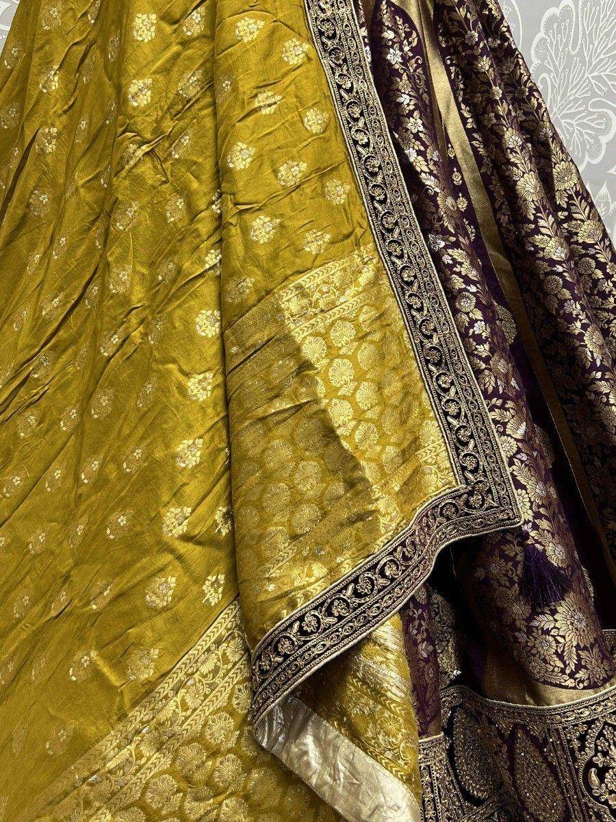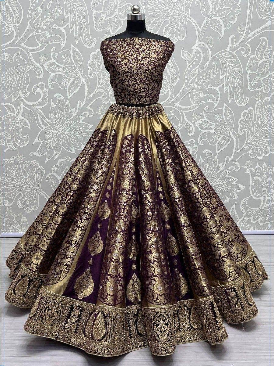 Introducing our stunning "lovely dark purple zari woven banarasi silk festival wear lehenga choli"! This exquisite ensemble is the perfect choice for Indian weddings and festivals, ensuring you stand out and make a grand entrance. Crafted with intricate details and superior craftsmanship, this lehenga choli set is sure to make you feel like royalty.