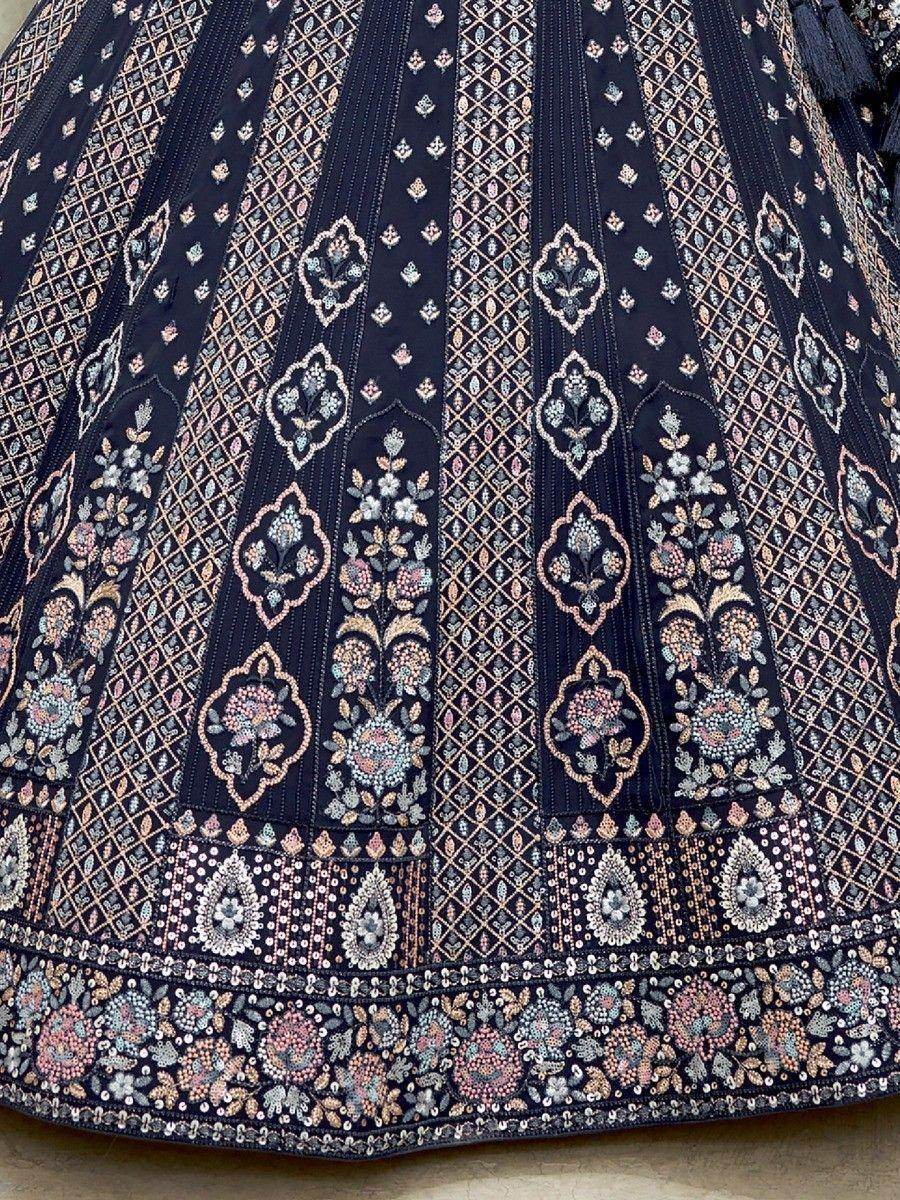 Introducing our lovely navy blue sequins georgette engagement wears lehenga choli, a truly elegant ensemble perfect for weddings, receptions, engagements, and special occasions. Crafted with precision and attention to detail, this navy blue lehenga choli set is designed to make you look and feel absolutely stunning.