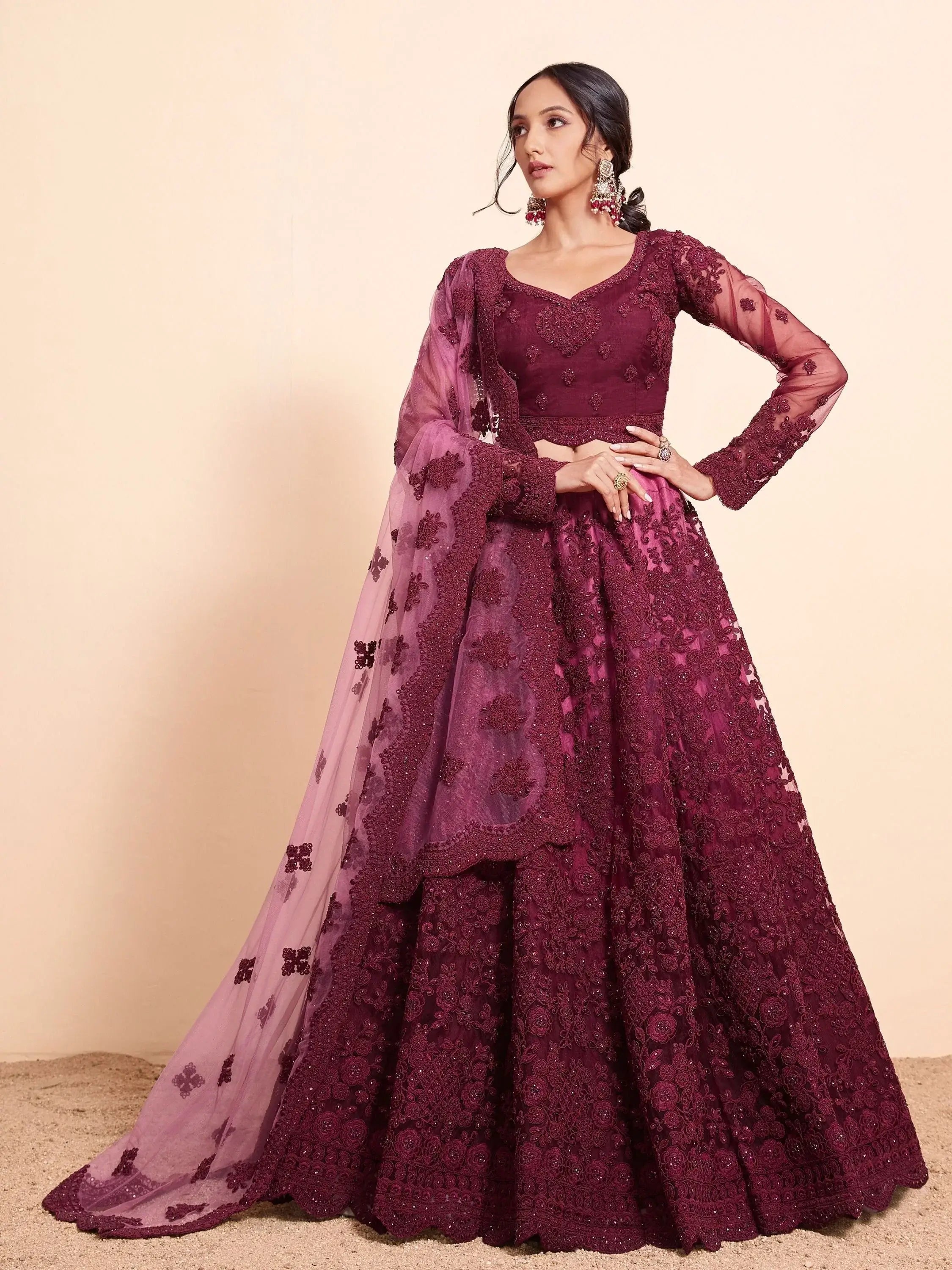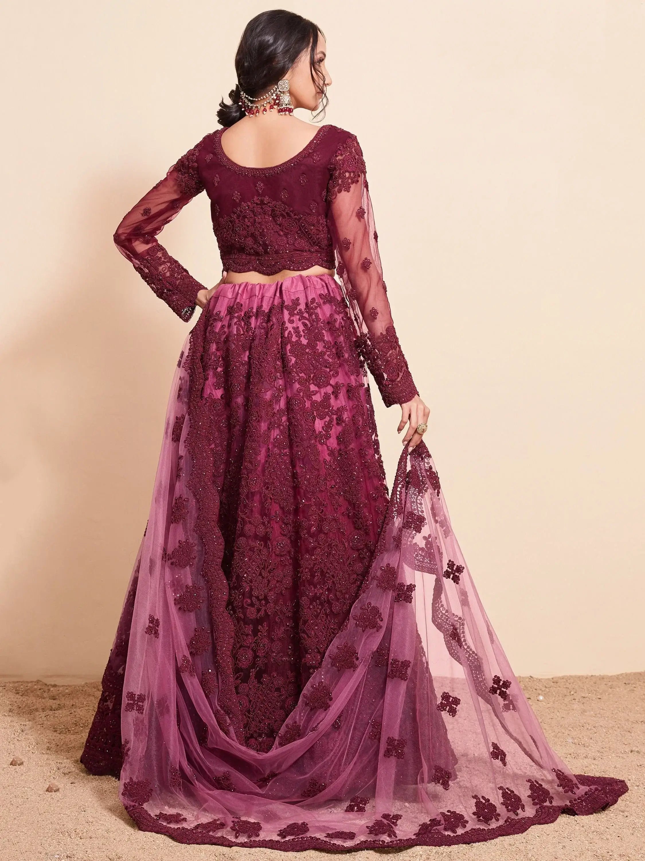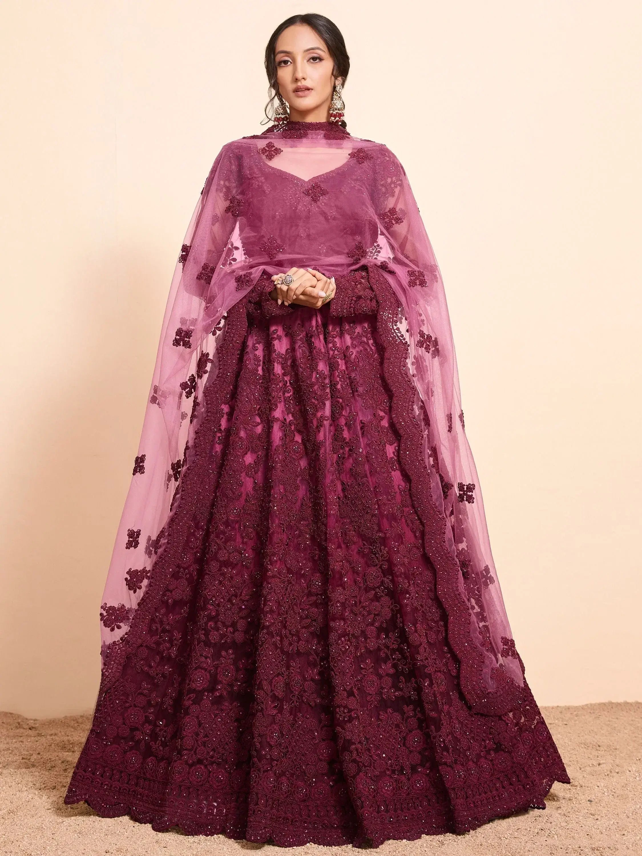 Our "magnetic magenta thread work net designer lehenga choli with dupatta" is a must-have addition to any ethnic wear collection. With its impeccable craftsmanship, luxurious details, and flattering fit, this ensemble is sure to make you feel like a royalty. Elevate your style and make a statement with this stunning lehenga choli set from Ethnic Plus.