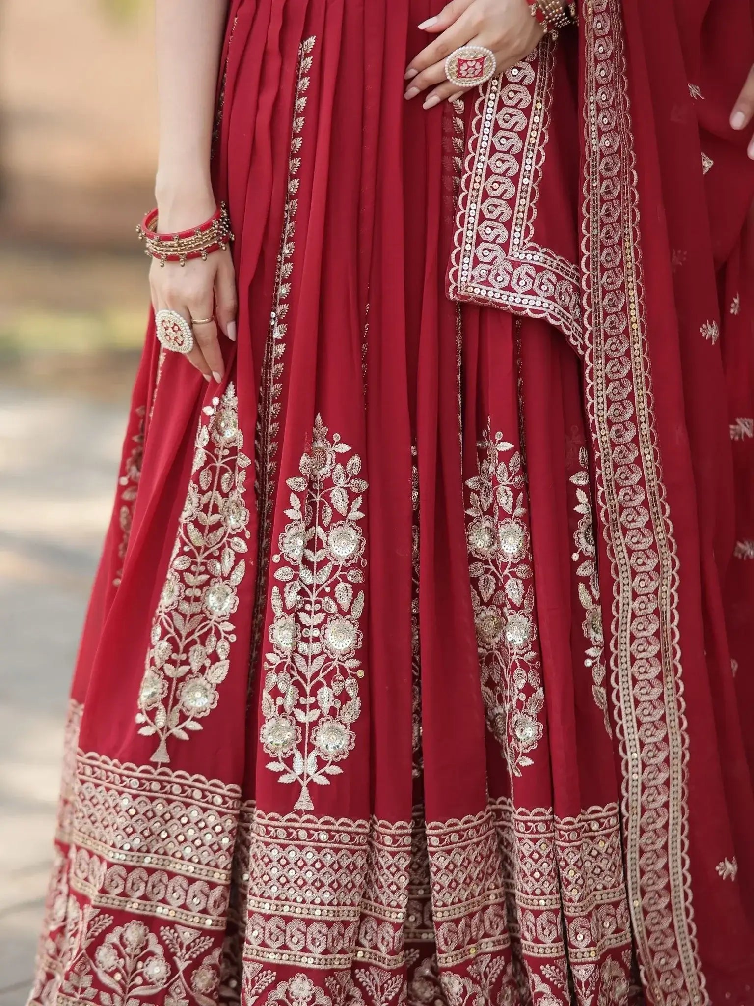 In the ever-evolving world of fashion, few pieces can compete with the timeless elegance of a well-crafted lehenga. The trending maroon embroidered fully flared georgette lehenga is a stunning addition to any wardrobe, designed to capture attention and exude confidence. With rich sequins and intricate thread work, this ensemble is not just clothing; it’s an experience.