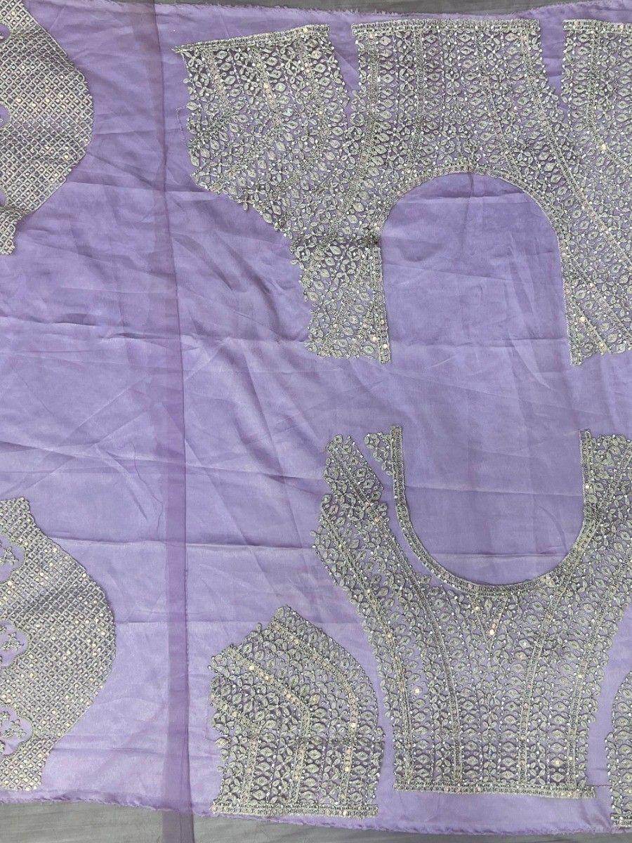 The lehenga is semi-stitched up to 42 inches and has a 4-meter flair, providing a comfortable and flattering fit. It also comes with a fully unstitched choli material, allowing you to customize it according to your preferences. When you wear this lavender lehenga choli, you will feel like a princess. Pair it with classy jewelry to enhance its majestic appeal and create a truly enchanting look.