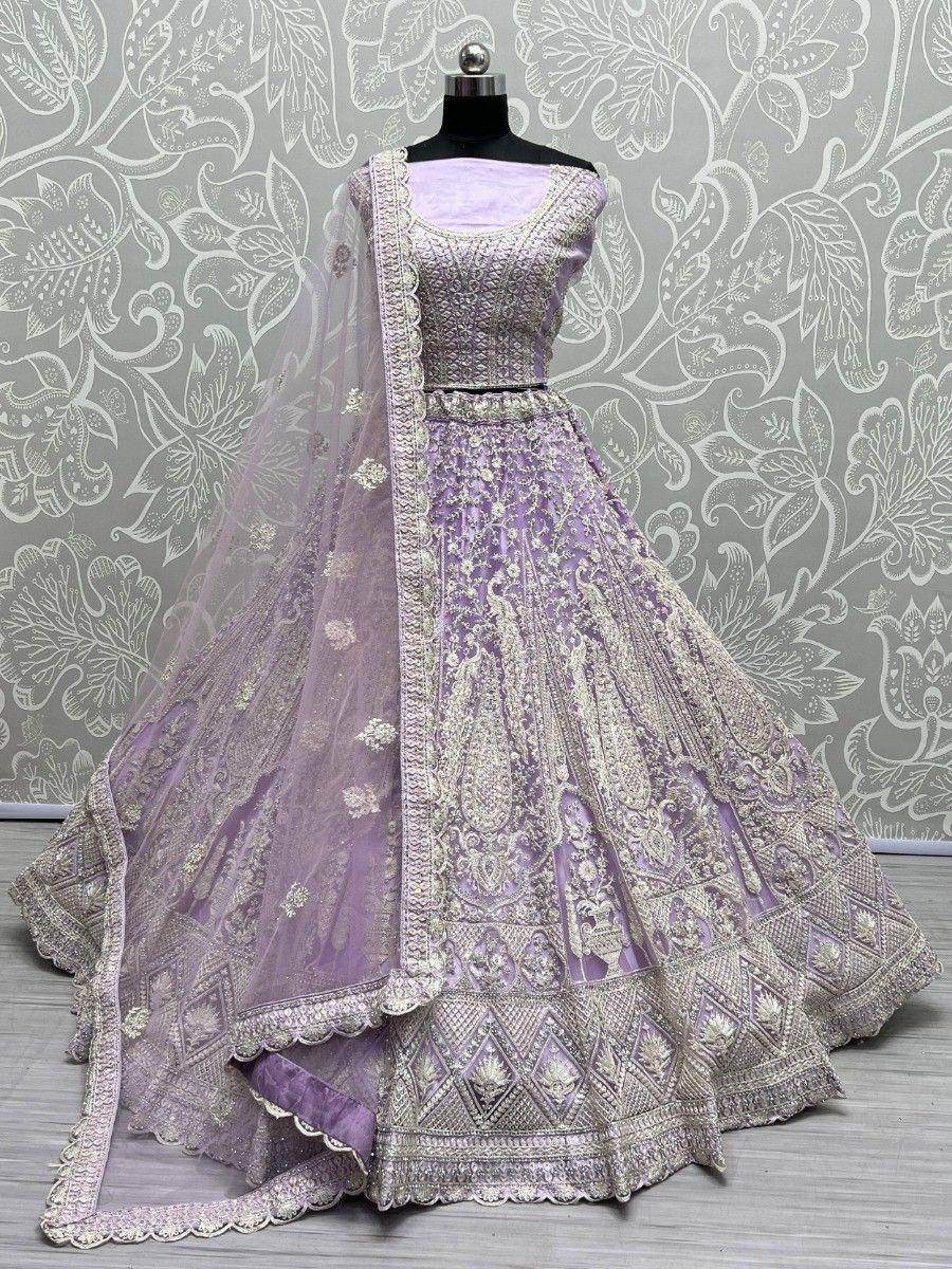 This lavender lehenga choli is the epitome of grace and elegance. Its intricate embroidery and exquisite detailing make it perfect for weddings, receptions, or ceremonies. Wear it with confidence and embrace the regal aura it exudes. Step into the spotlight and be the center of attention with our majestic lavender heavy embroidered net engagement wear lehenga choli.
