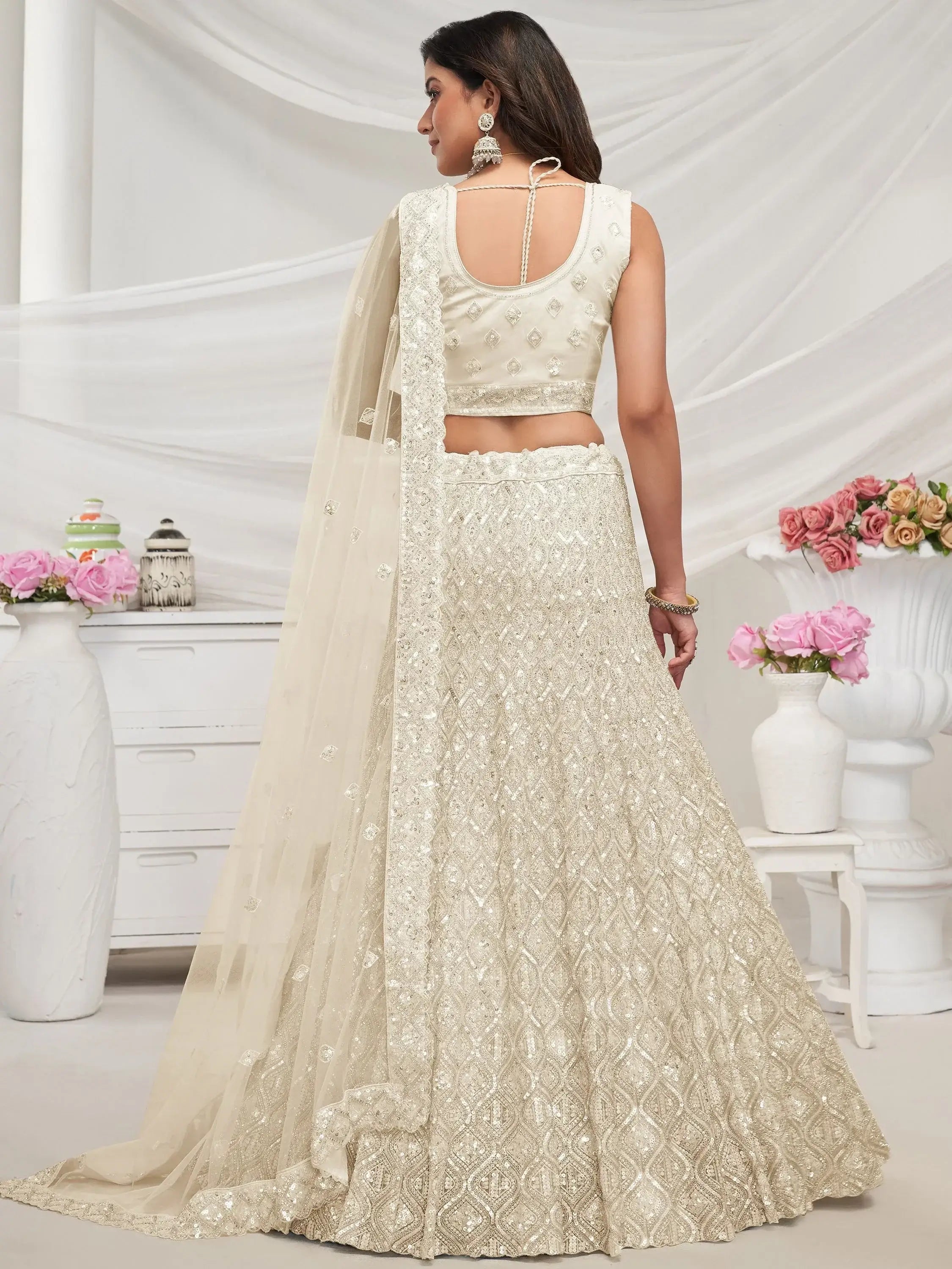 Get ready to make a statement with our marvelous ivory fully embroidered net designer lehenga choli. This designer lehenga is a true masterpiece, featuring irresistible ivory color net material with intricate sequin work, thread work, stone work, and khatli work. The attention to detail and craftsmanship on this lehenga is truly exceptional.