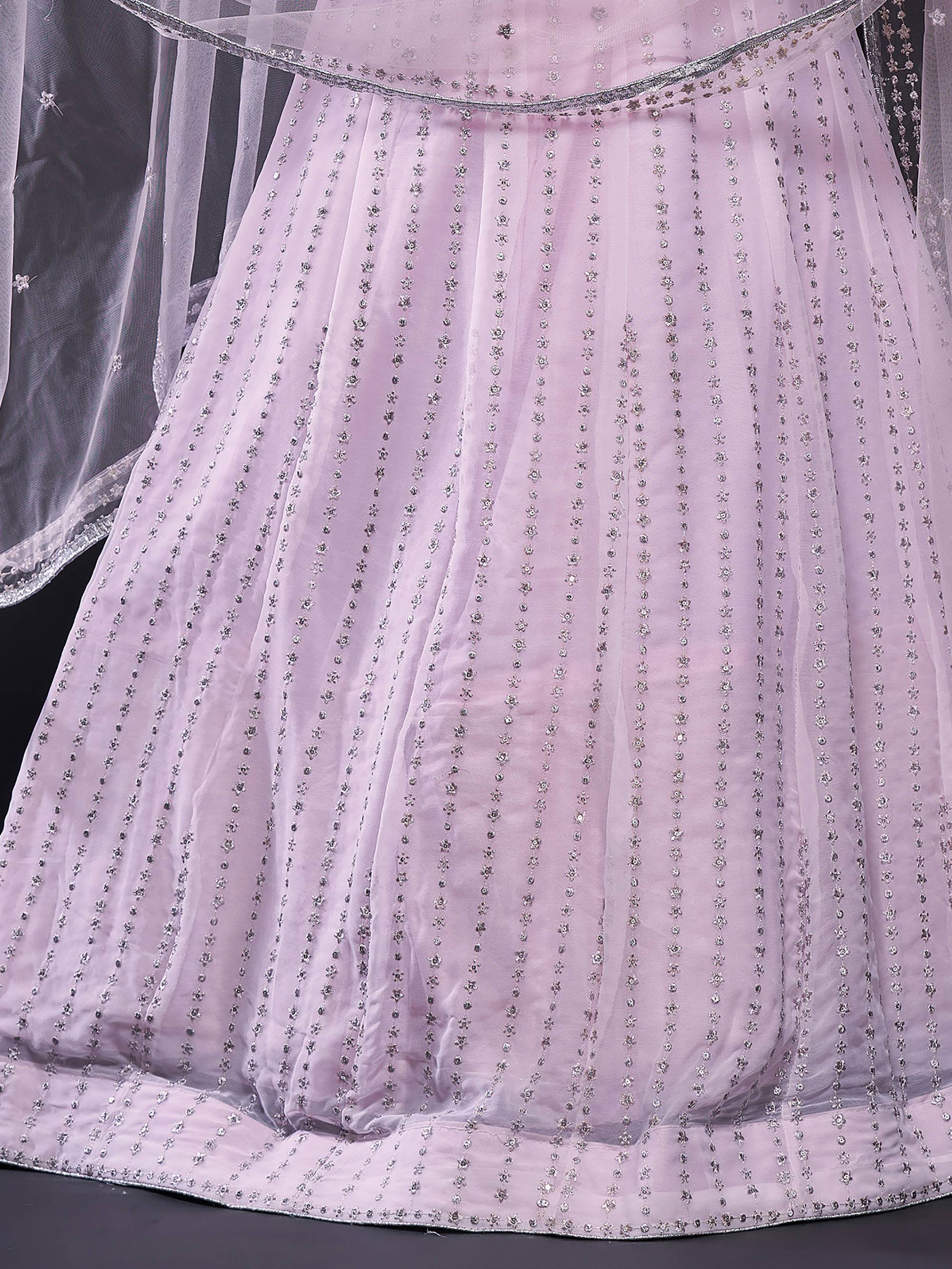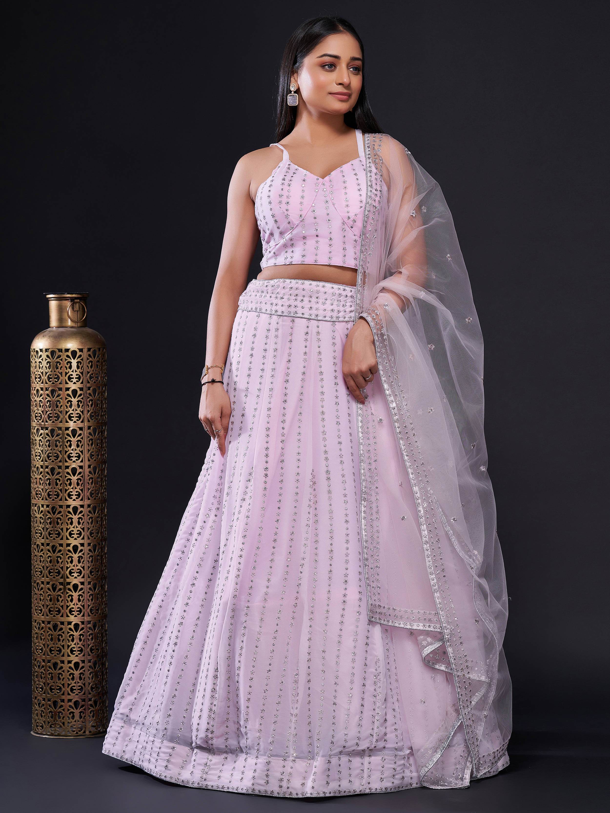 This marvelous pink sequins georgette reception wear lehenga choli is semi-stitched up to 42 inches, allowing for easy customization and a perfect fit. The choli material is fully unstitched, giving you the freedom to create the perfect style and design.