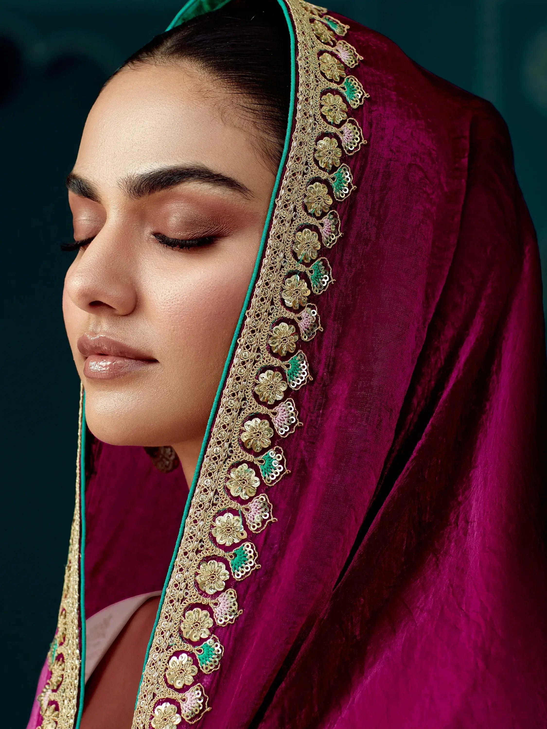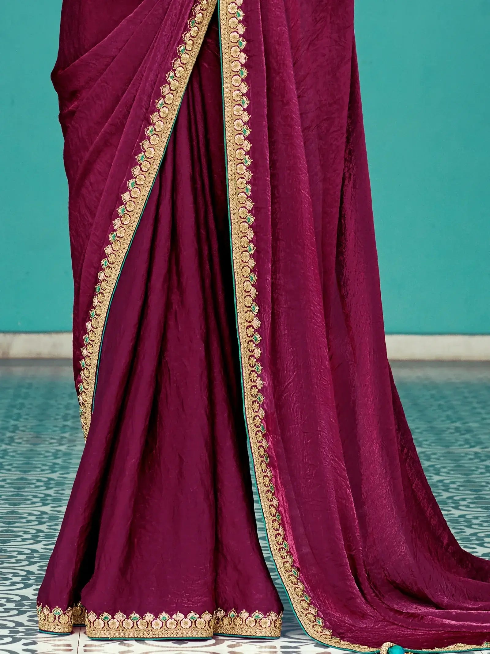 The marvelous wine borderwork tissue silk wedding saree with blouse is a timeless piece that will make you stand out at any event. It is perfect for creating a traditional yet modern look, combining classic saree design with contemporary elements. The rich color palette and luxurious fabric add a touch of sophistication to your ensemble.