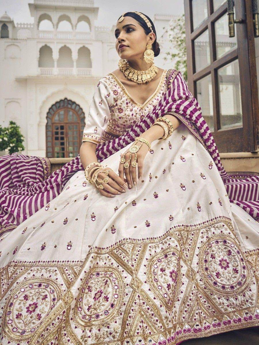 The Off-White Mirror Work Silk Sangeet Wear Lehenga Choli is made with love and care in India, drawing inspiration from the rich cultural heritage of the country. Its timeless beauty and attention to detail make it a perfect choice for traditional occasions like weddings and marriages.