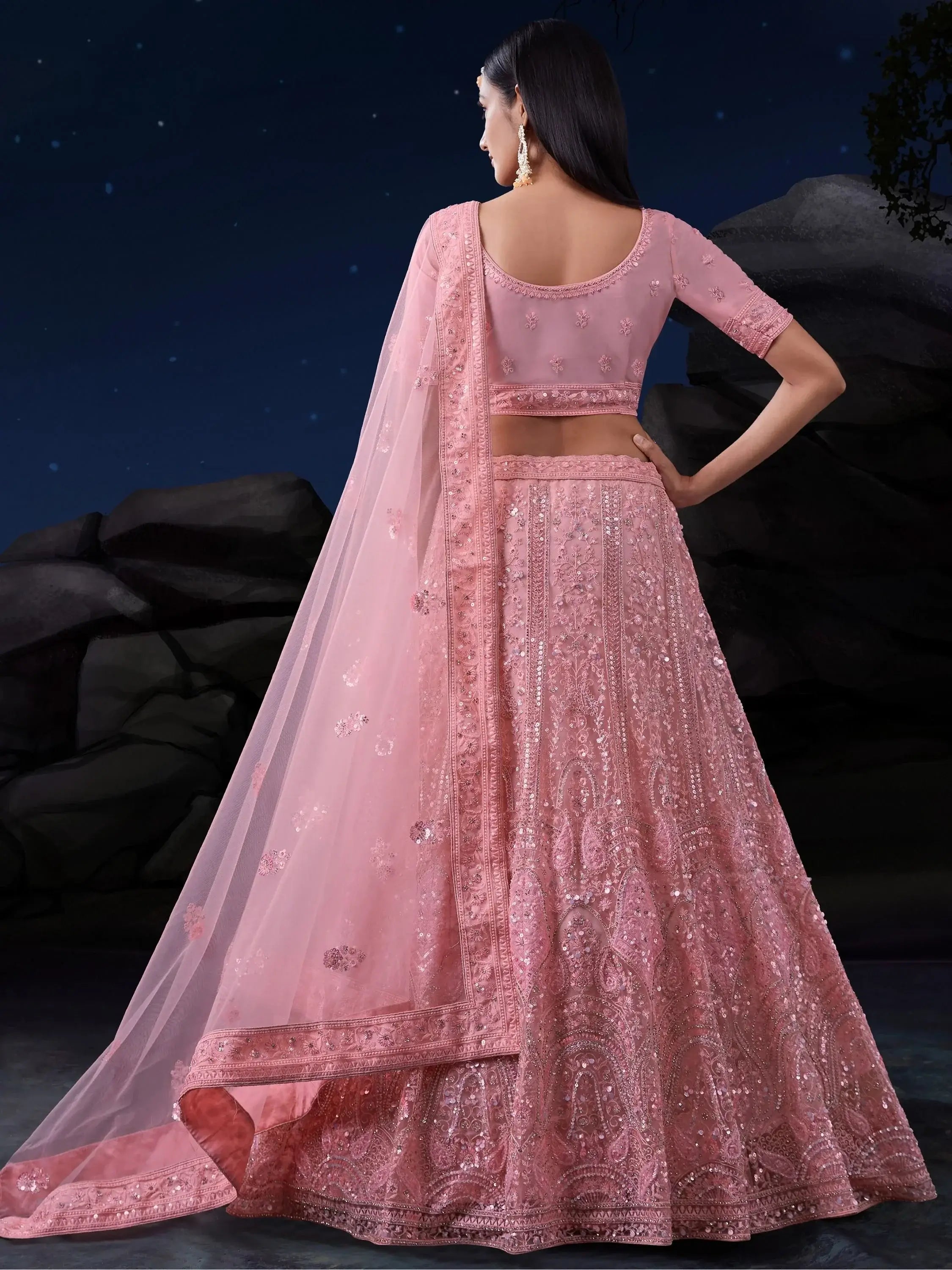 Our mesmerizing pink sequins net engagement wear lehenga choli is a show-stopping addition to any wardrobe. With its stunning design, high-quality materials, and customizable fit, this outfit is a must-have for anyone looking to make a fashionable statement at their next special event.