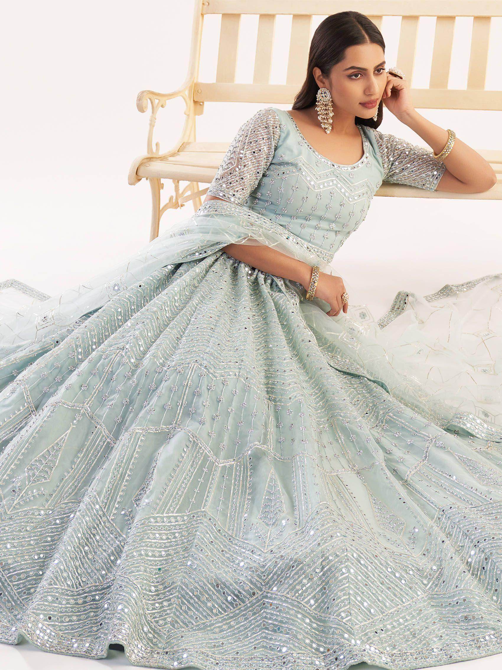 Pista Green Dori Thread Embroidered Net Wedding Lehenga Choli