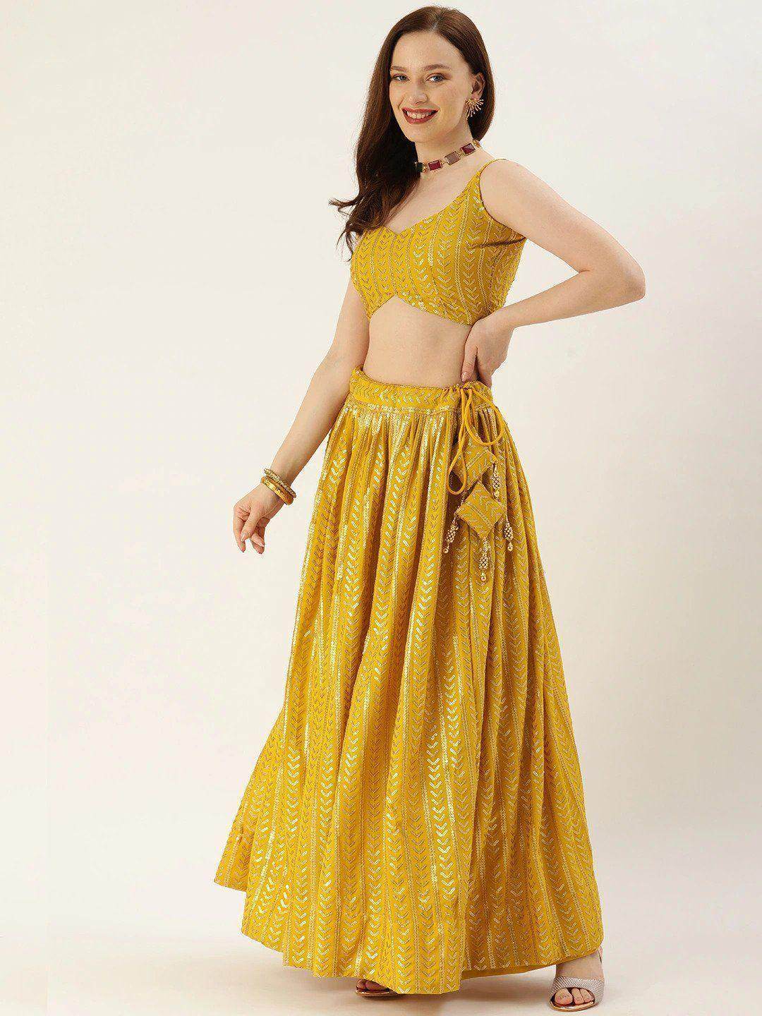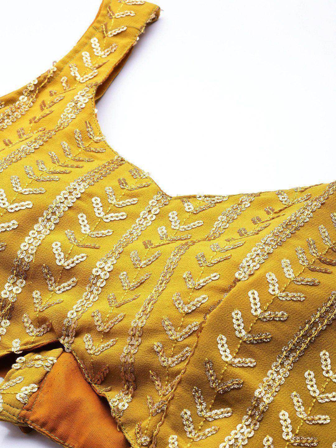 Mustard and gold-toned embellished lehenga choli with dupatta, sequinned