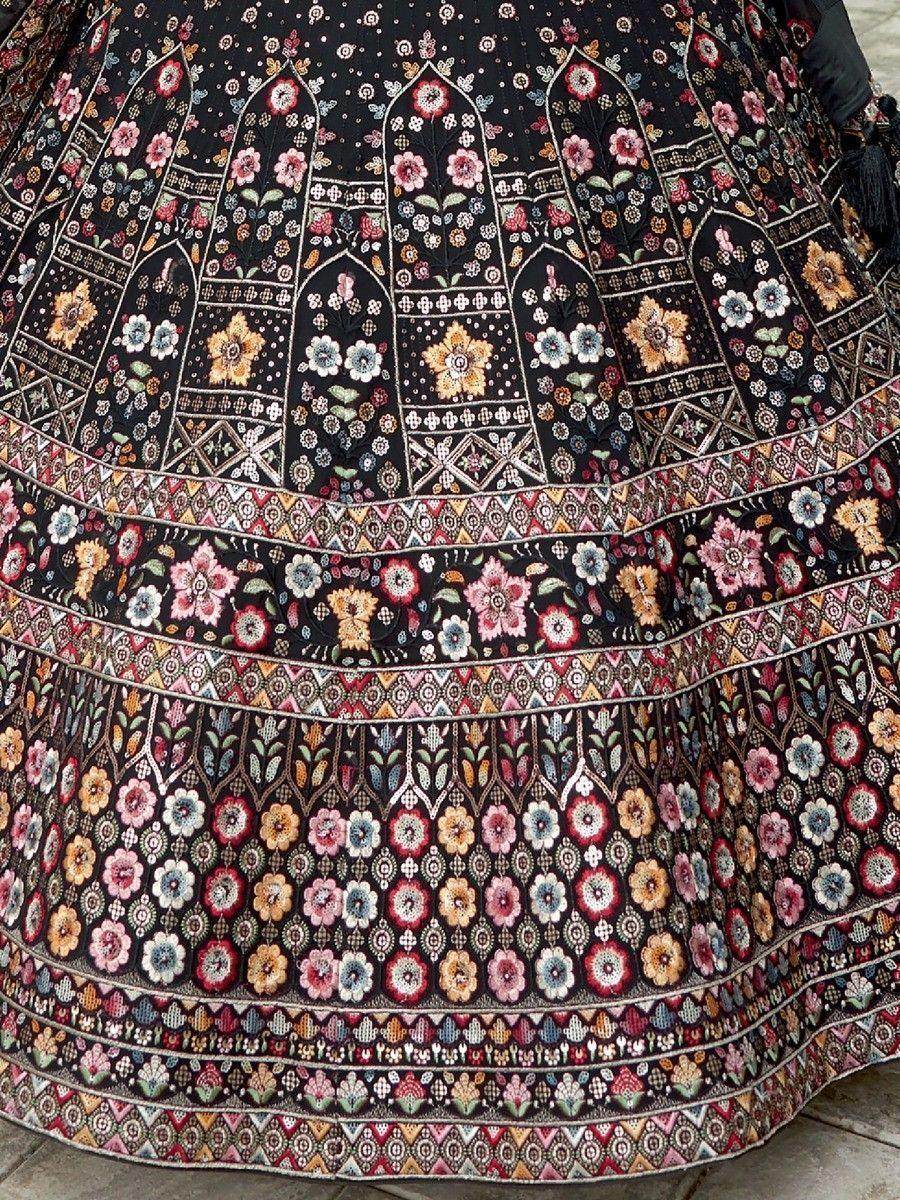 Introducing the outstanding black sequins georgette reception wear lehenga choli, a truly exquisite piece that exudes elegance and sophistication. This ready-to-wear ensemble is perfect for weddings, receptions, engagements, and other special occasions.