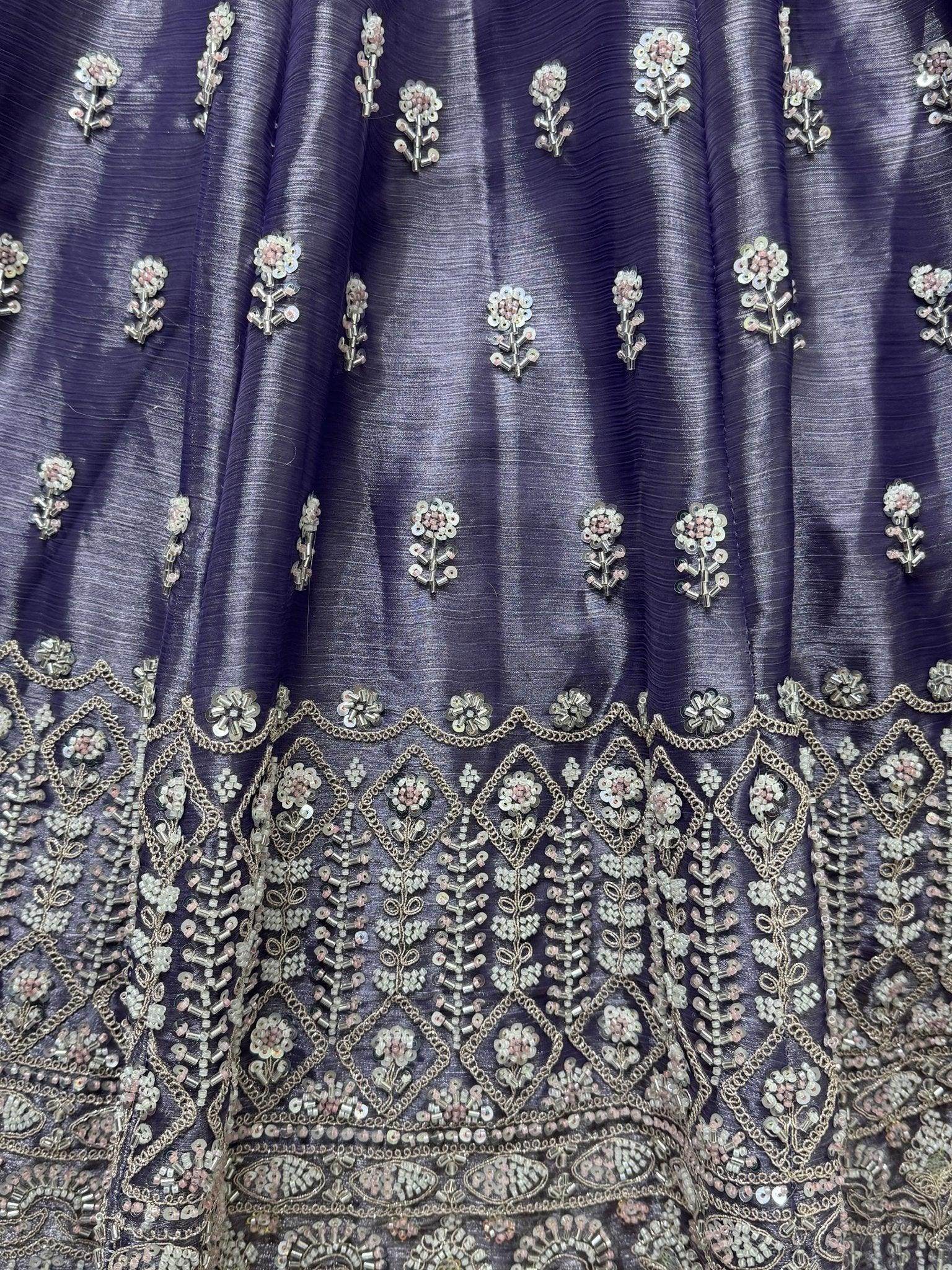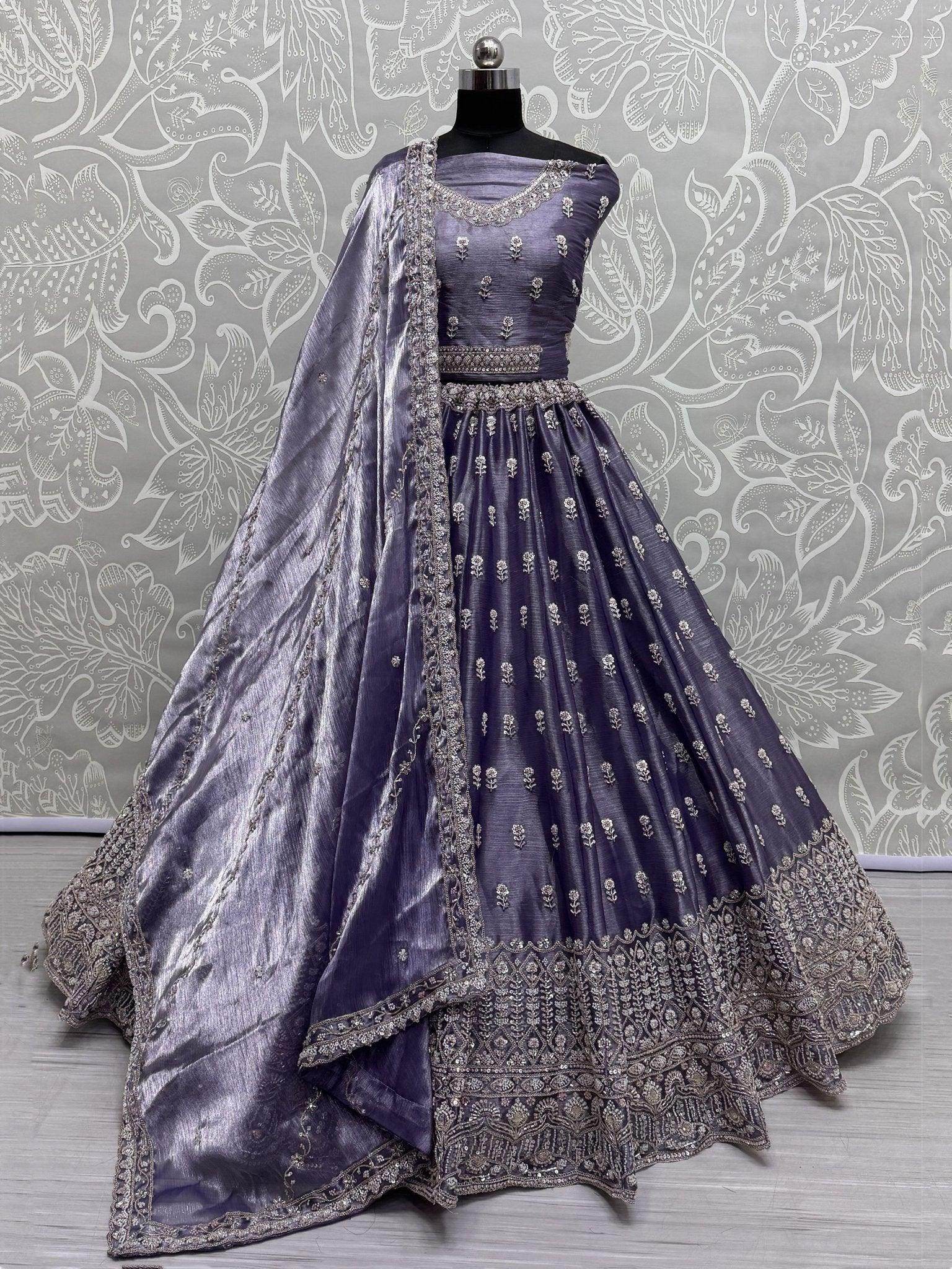 This stunning purple ensemble is the perfect choice for bridesmaids looking to make a stylish statement at any wedding or special event. The rich color and intricate embroidery will surely earn you compliments for your impeccable sense of style. Whether you're attending a traditional Indian wedding or a modern celebration, this lehenga will help you stand out from the crowd and make a lasting impression.