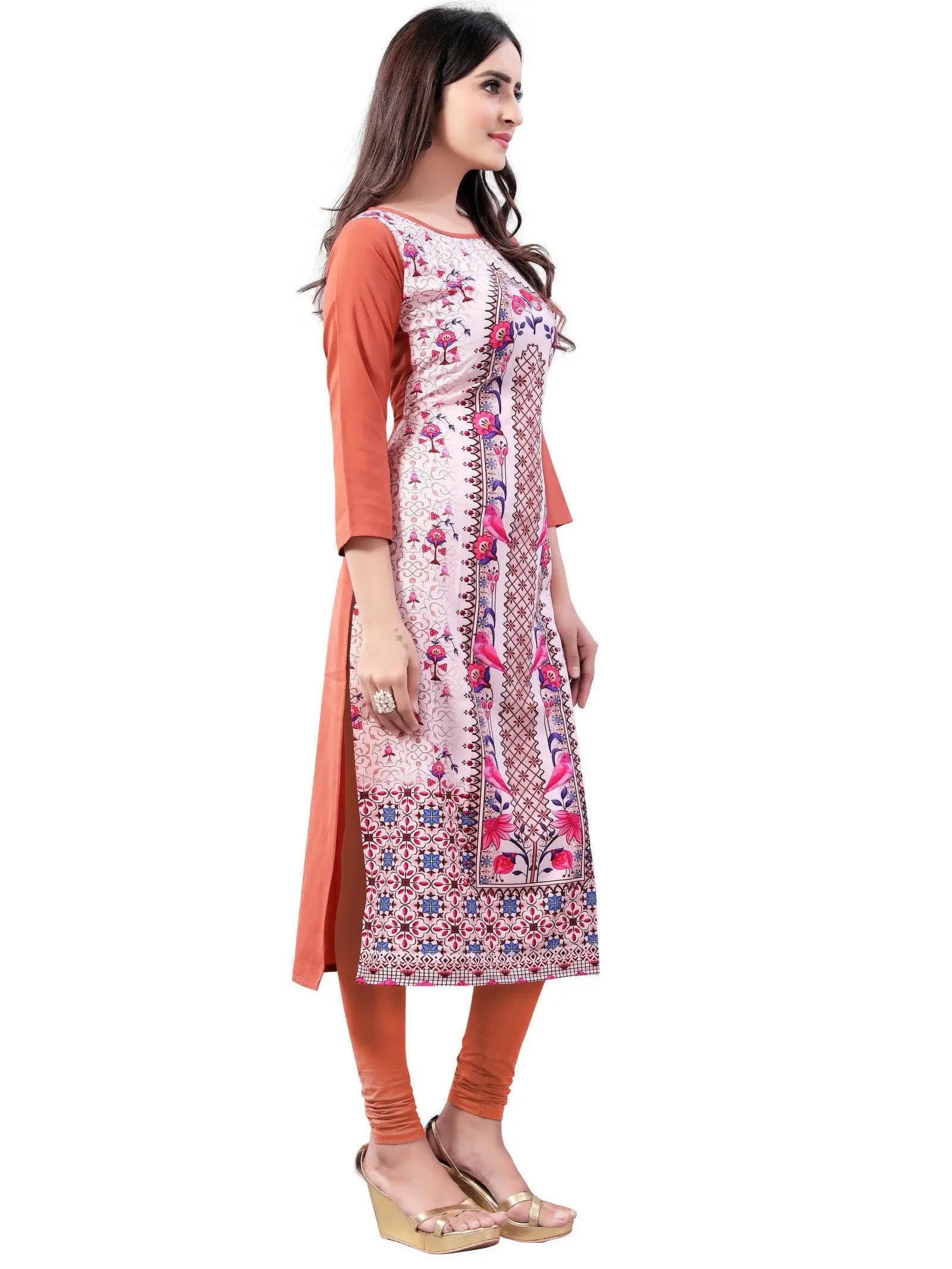 This casual wear designer kurti is fashioned on American Crepe / Rayon fabric & enriched with beautiful digital floral print work done on entire body as shown.