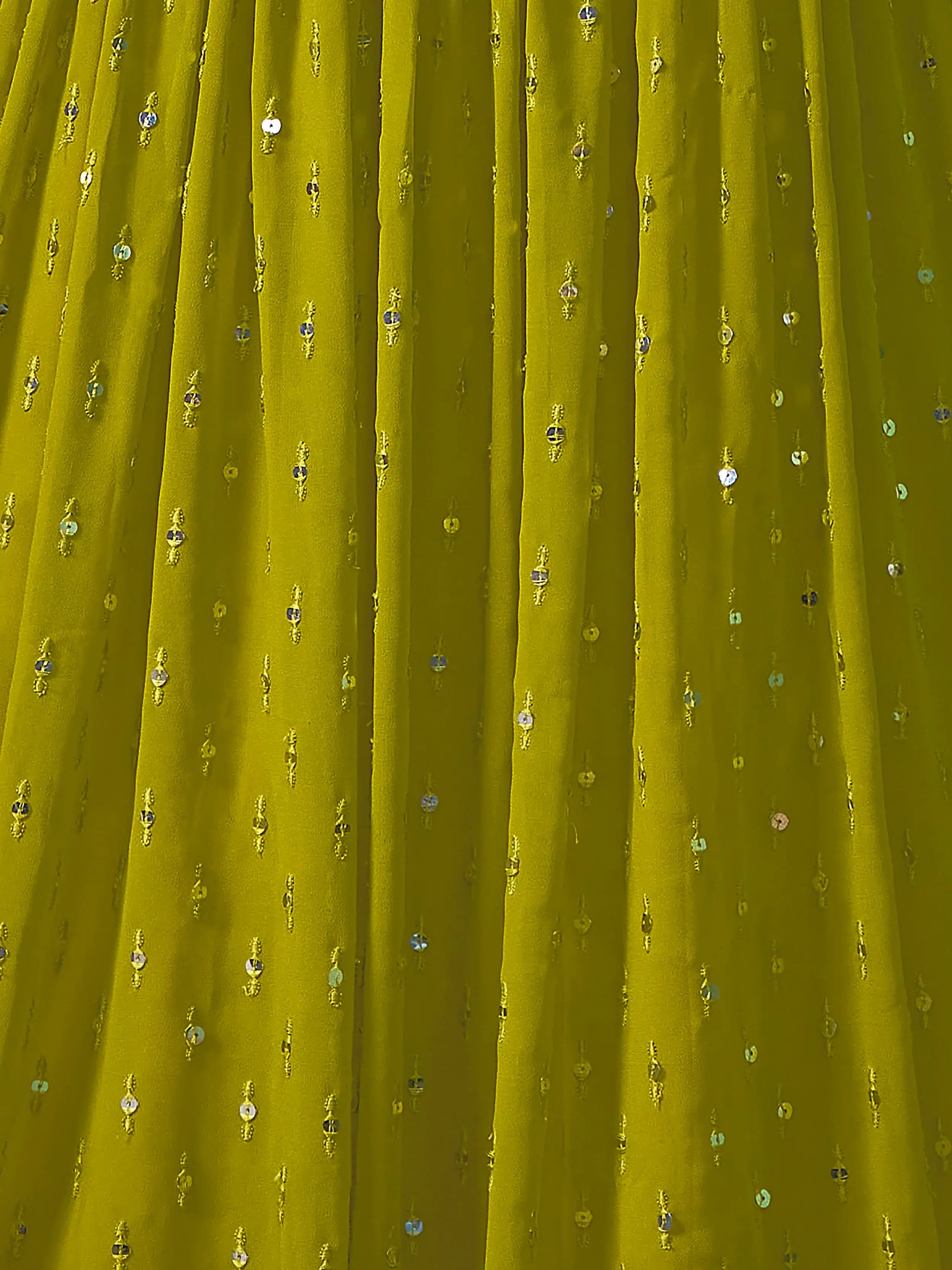 The precious green sequins georgette mehendi wear lehenga choli is a true masterpiece that combines tradition with contemporary style. Its stunning green color, intricate sequin and embroidery work, and comfortable fit make it a must-have for any special occasion. Whether you're attending a wedding or a mehendi ceremony, this lehenga choli will ensure you look and feel your best.
