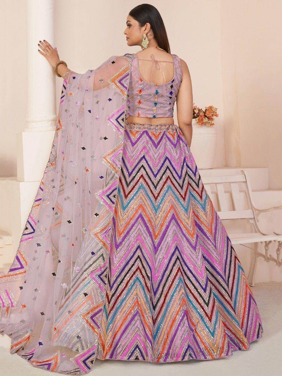 Introducing our precious lavender sequins net engagement wear lehenga choli, the perfect choice for your special occasion. This exquisite lehenga choli set is made from high-quality net material in a stunning pink color. It is adorned with intricate sequin, threadwork, and zari work, adding a touch of glamour and elegance to your look.
