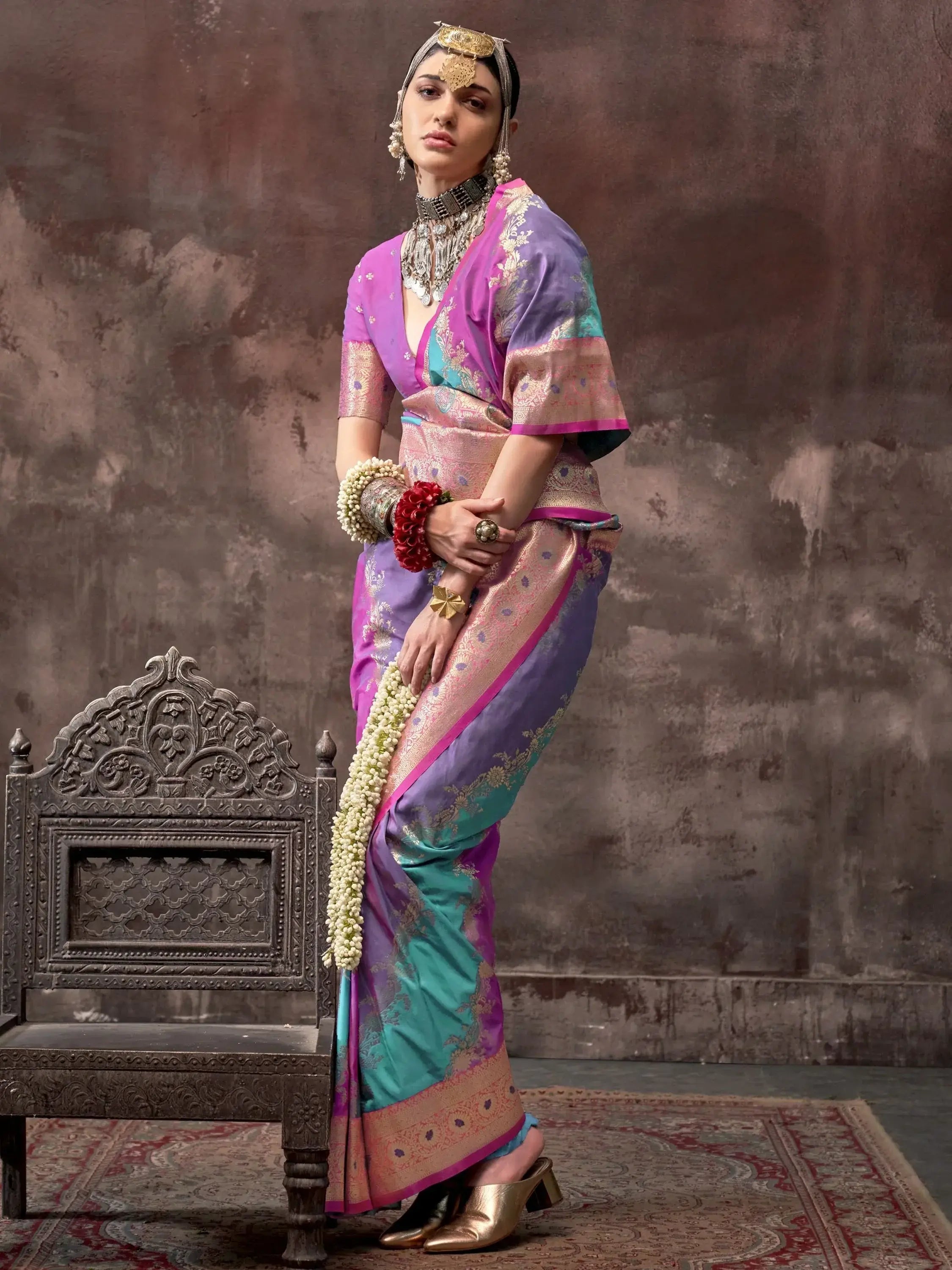 Whether you're attending a grand wedding or a festive occasion, this multi-color saree with zari weaving work will ensure you look radiant and sophisticated. Pair it with statement jewelry for a complete, elegant look.