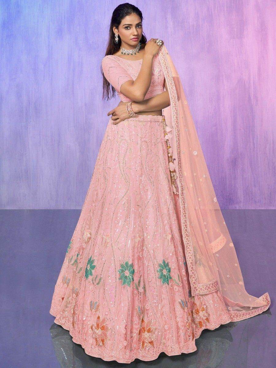 Elevate your style quotient with our precious peach sequins net engagement wear lehenga choli. Crafted with intricate details and exquisite craftsmanship, this designer lehenga is a perfect choice for special occasions like festivals, weddings, and receptions.
