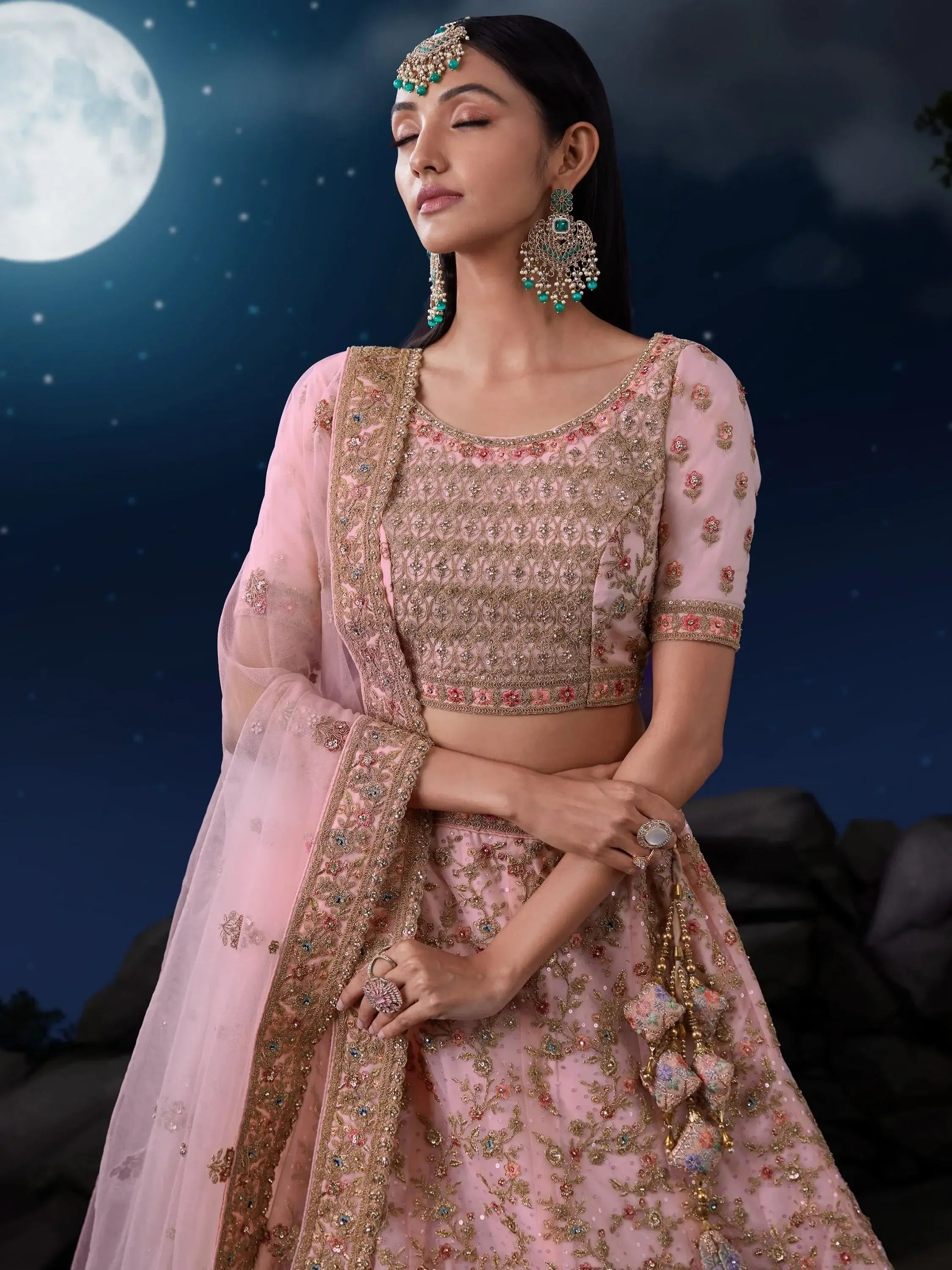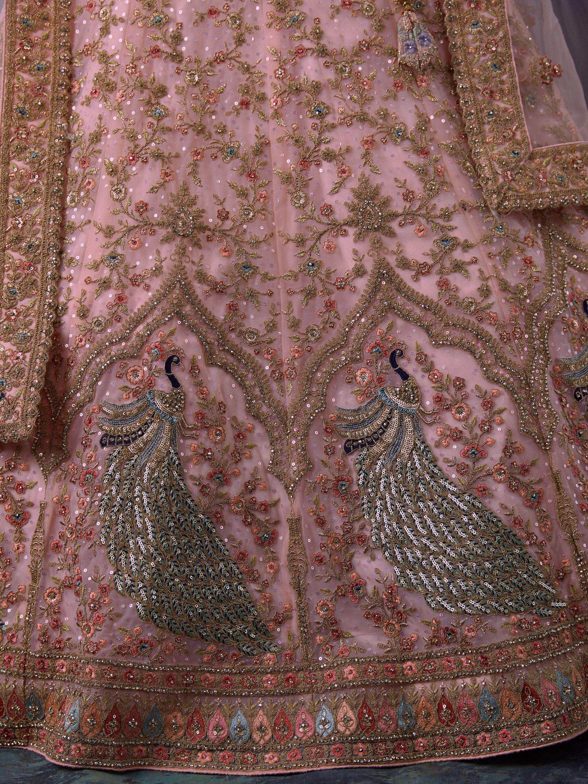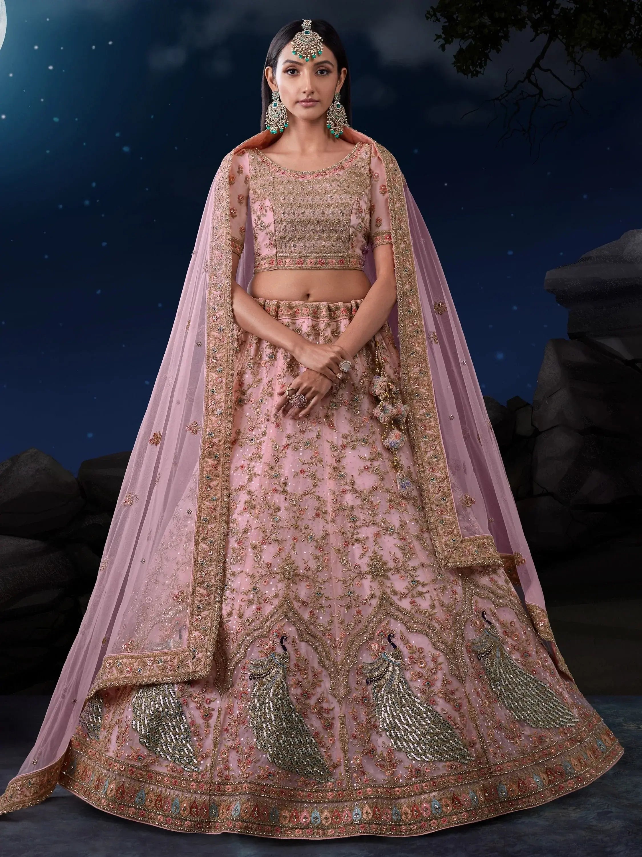 Introducing our "precious pink sequins net wedding lehenga choli with dupatta," a stunning ensemble that will make you the star of any event. This set includes a pink color net material lehenga with exquisite dori work, sequin work, thread work, and zarkan work. The similar color net material choli features the same intricate detailing, making it a perfect match to the lehenga. Completing the look is a matching net dupatta with dori work, zarkan work, thread work, and beautiful sequin lace work.