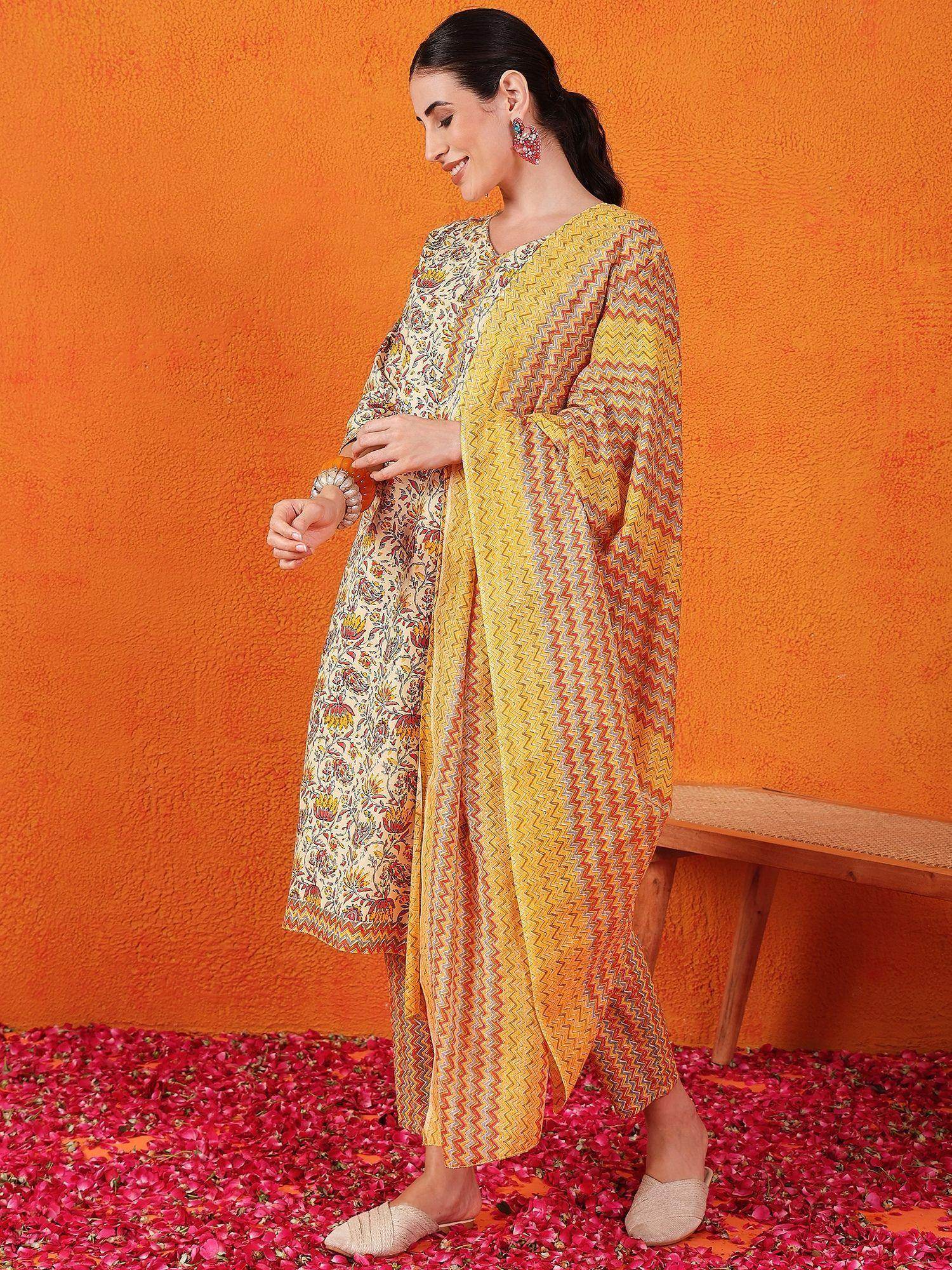 The matching color cotton pant and dupatta complete the look, adding an elegant touch to the ensemble. You can wear this yellow pant suit at festivals, functions, and events, and easily accessorize it to create a unique and personalized style.