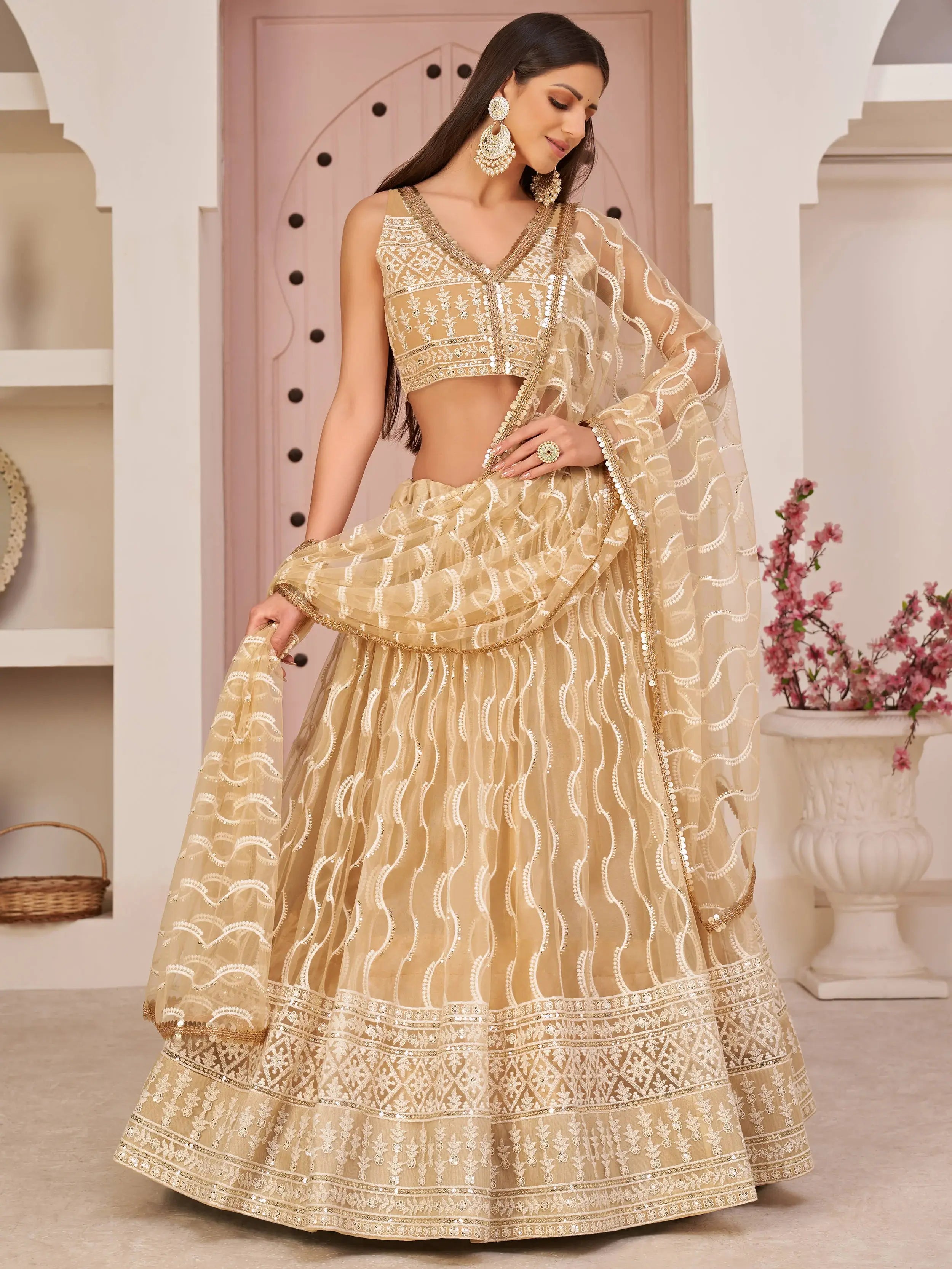Shop for this amazing beige color lehenga for coming festivals and weddings.