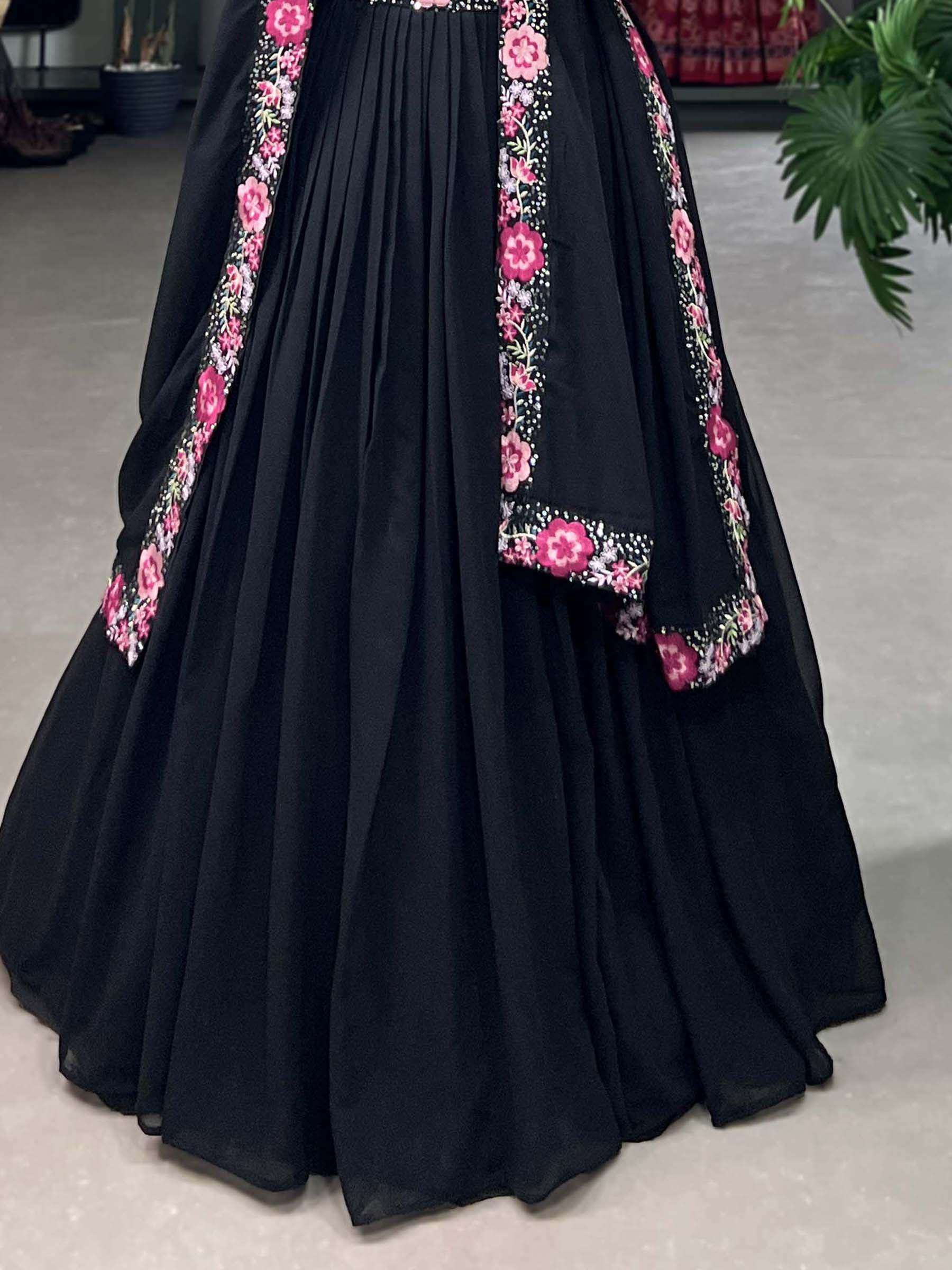 You bring the mood. The Black Sequins Georgette Party Wear Lehenga Choli with Dupatta brings the magic.