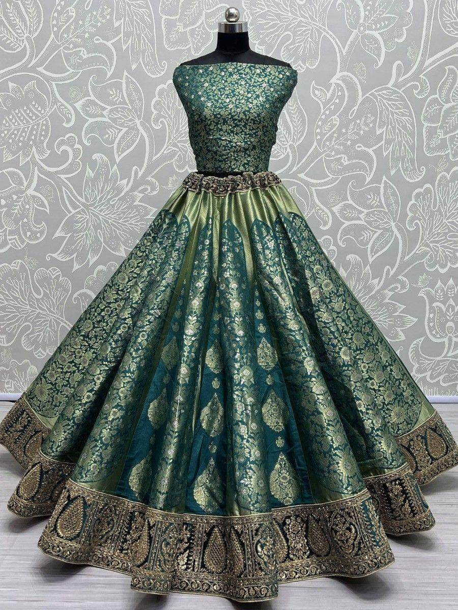 Introducing our stunning pretty teal green zari weaving banarasi silk traditional lehenga choli, perfect for Indian weddings and festivals. This exquisite lehenga set is crafted with the finest teal green banarasi silk material, featuring intricate zari weaving and meenakari handwork.