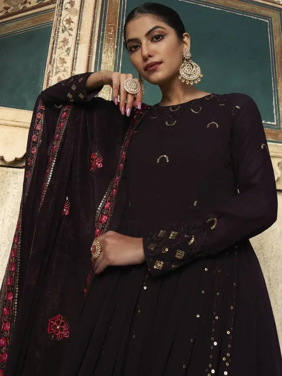 Glamorous Red Zari Embroidered Georgette Anarkali Gown With Dupatta