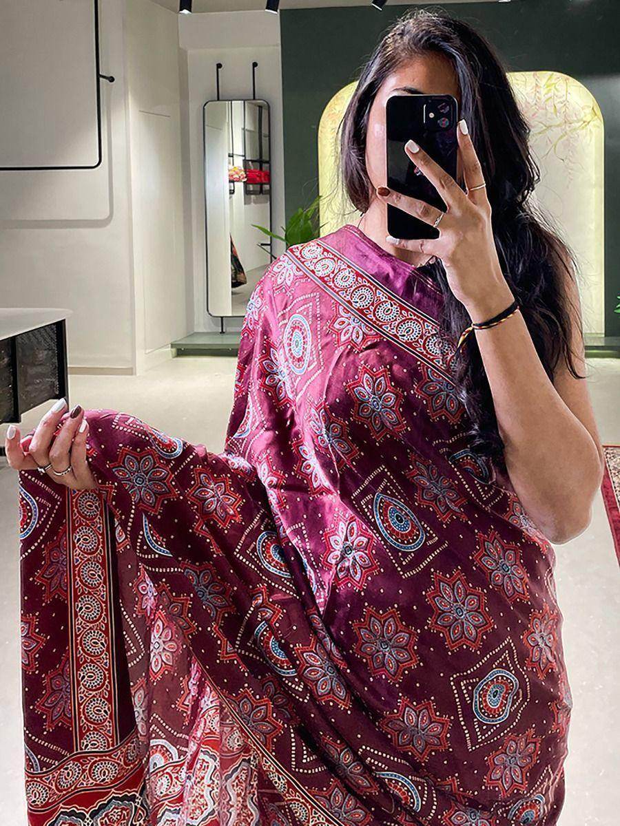 Adorn this marriage season with maroon gajji silk saree to slay the look and catch all limelight with matching accessories and gajras on stylish hair-do.