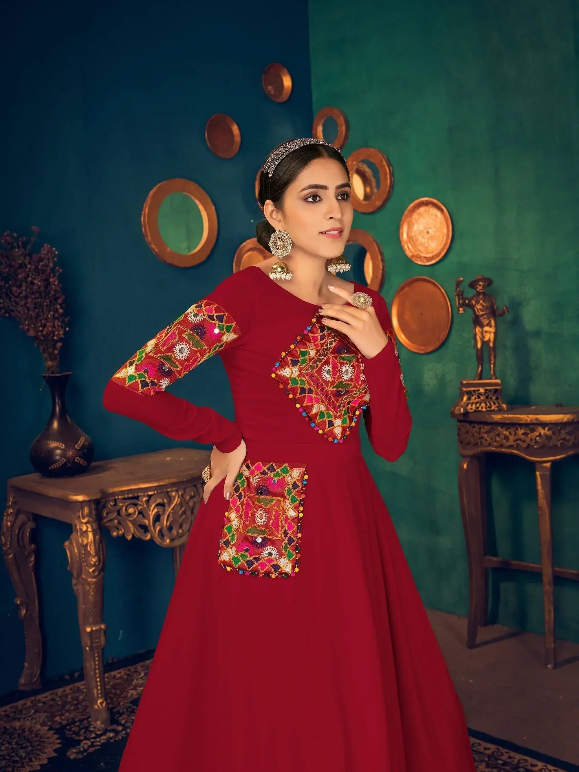 Glamorous Red Zari Embroidered Georgette Anarkali Gown With Dupatta