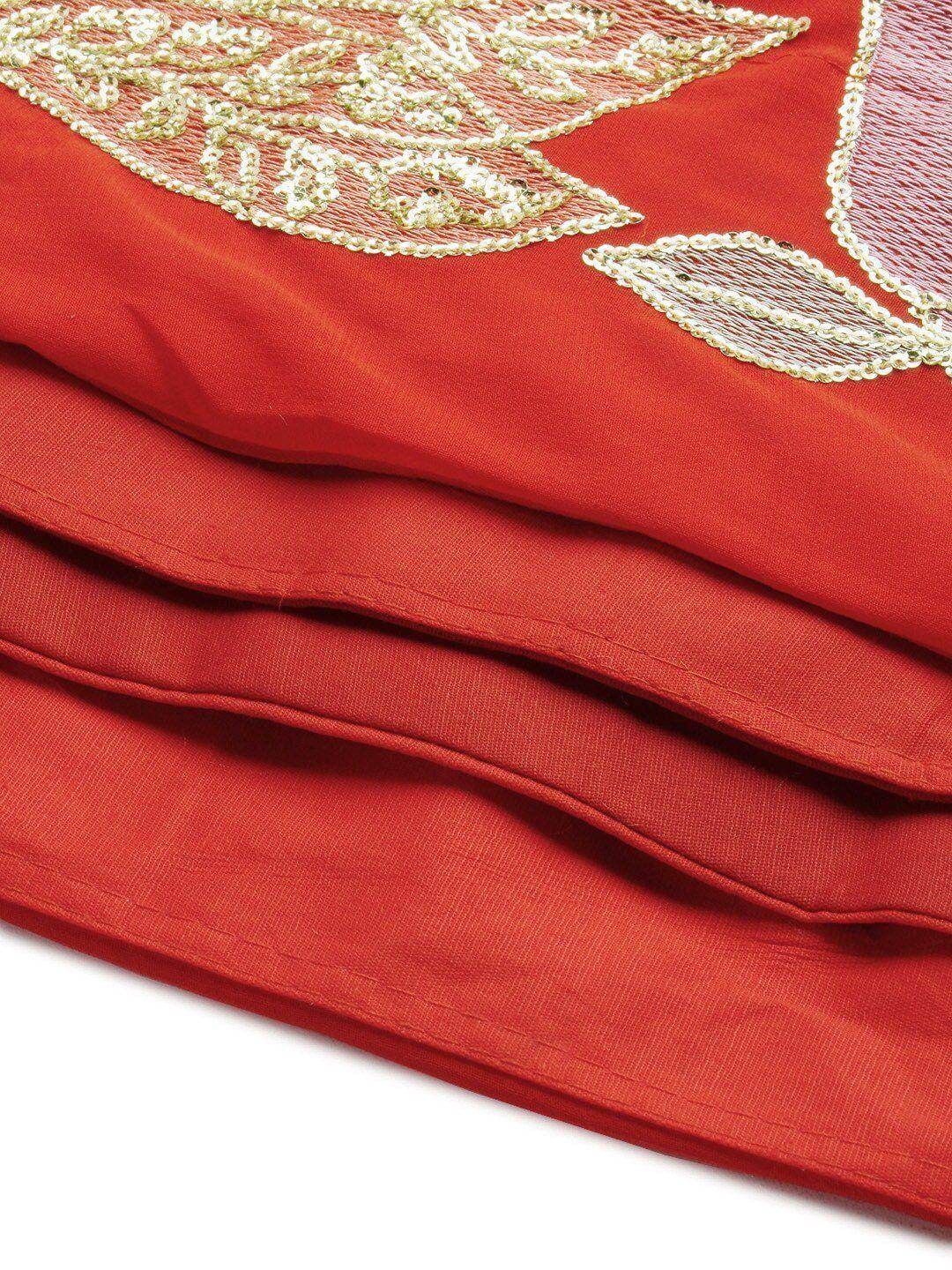Glamorous Red Zari Embroidered Georgette Anarkali Gown With Dupatta