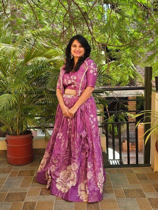Add a touch of charm to your wardrobe with this refreshing purple readymade crop top lehenga, crafted from premium tussar silk. The floral print brings a graceful, feminine vibe, making it a perfect blend of elegance and style.