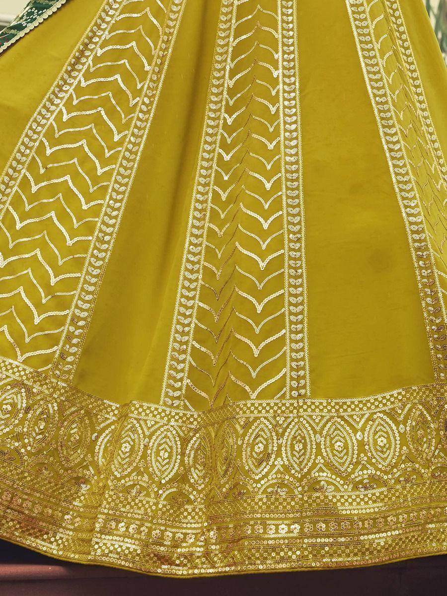 Present an energetic highlight to your ethnic attire by donning this ravishing fluorescent green color designer lehenga made of georgette material embellished with floral sequins embroidered work all over.