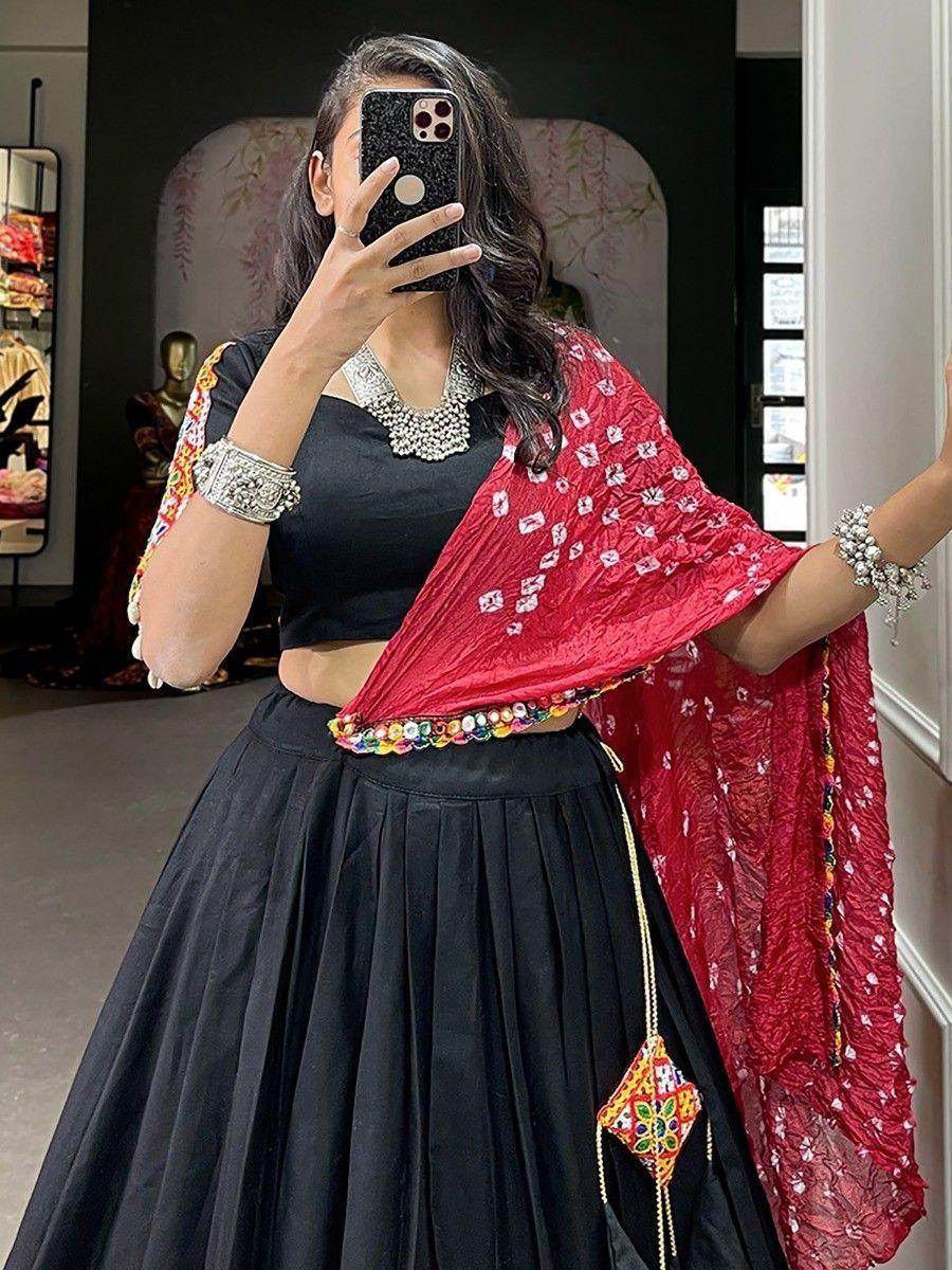 Our stunning black gamthi work cotton Navratri wear lehenga choli is a perfect combination of style, comfort, and traditional charm. It is ideal for festive occasions like Navratri, where you can showcase your ethnic style effortlessly. With its distinctive features, this lehenga choli is sure to make you the center of attention wherever you go.